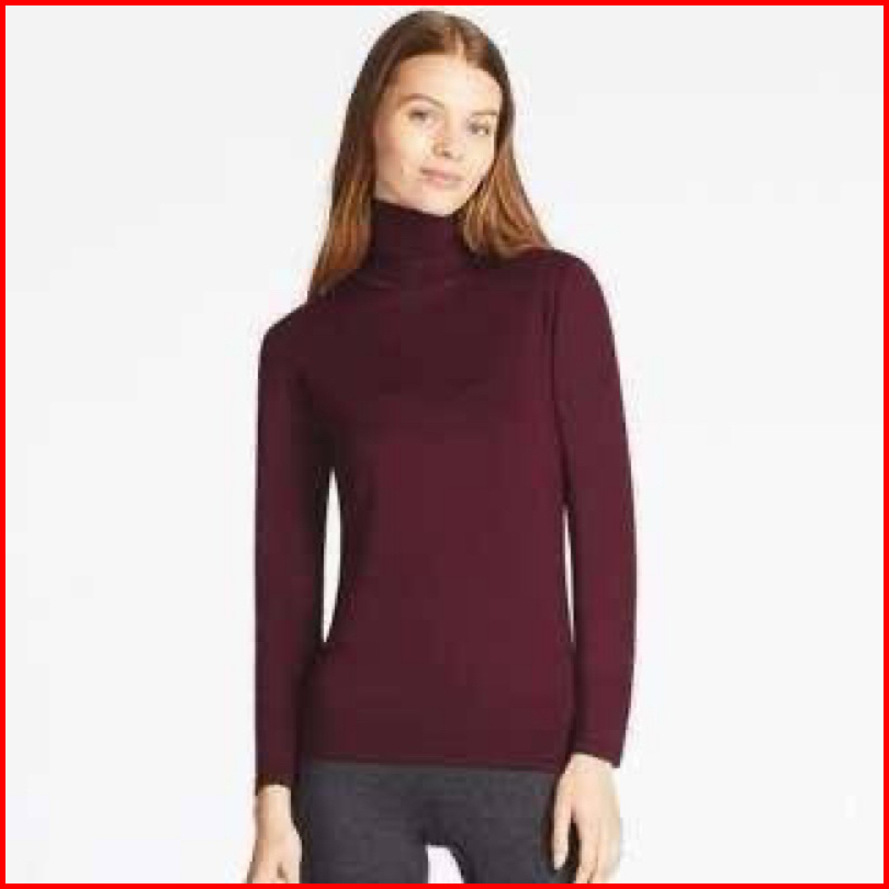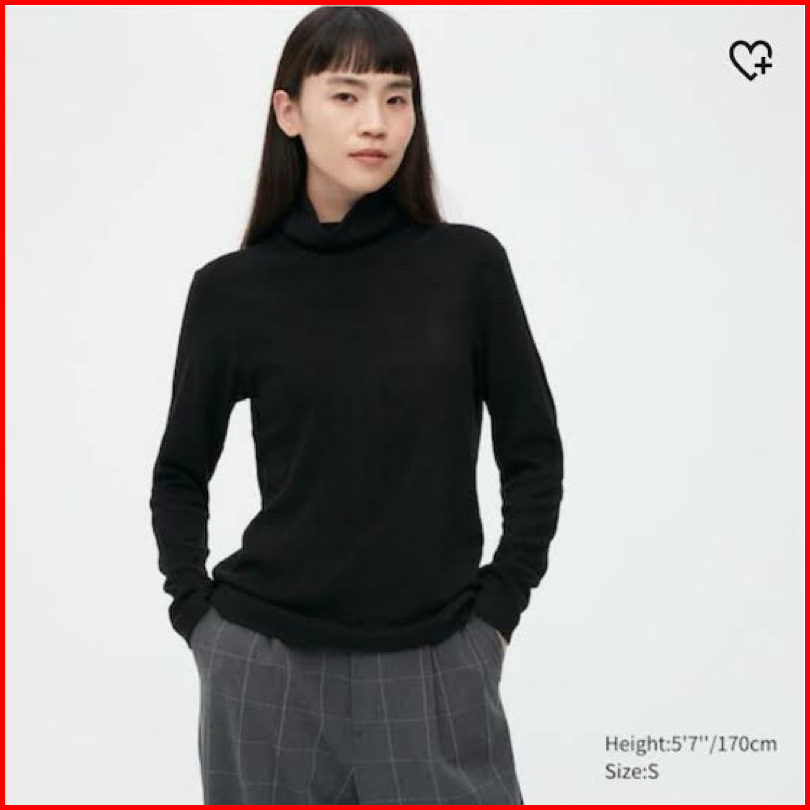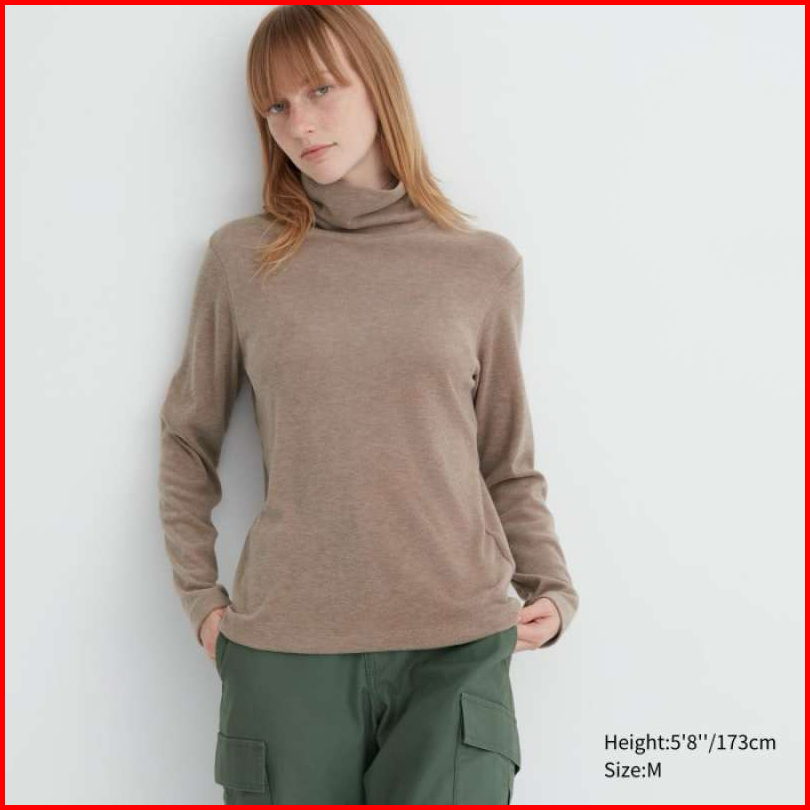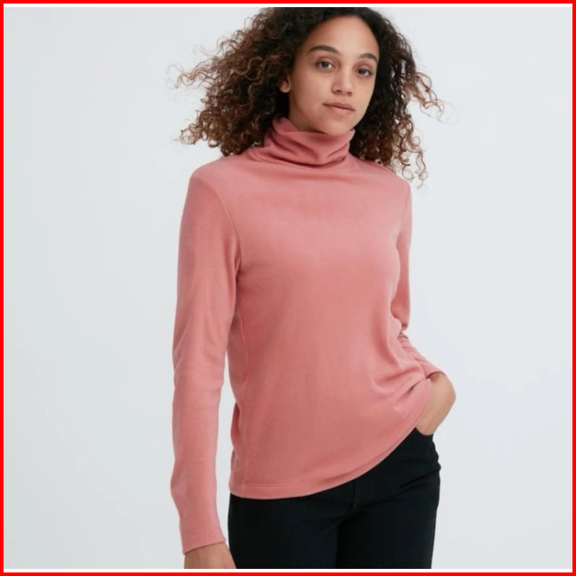 Heattech T-shirt Fleece Kerah Tinggi Uniqlo Lembut Elastis