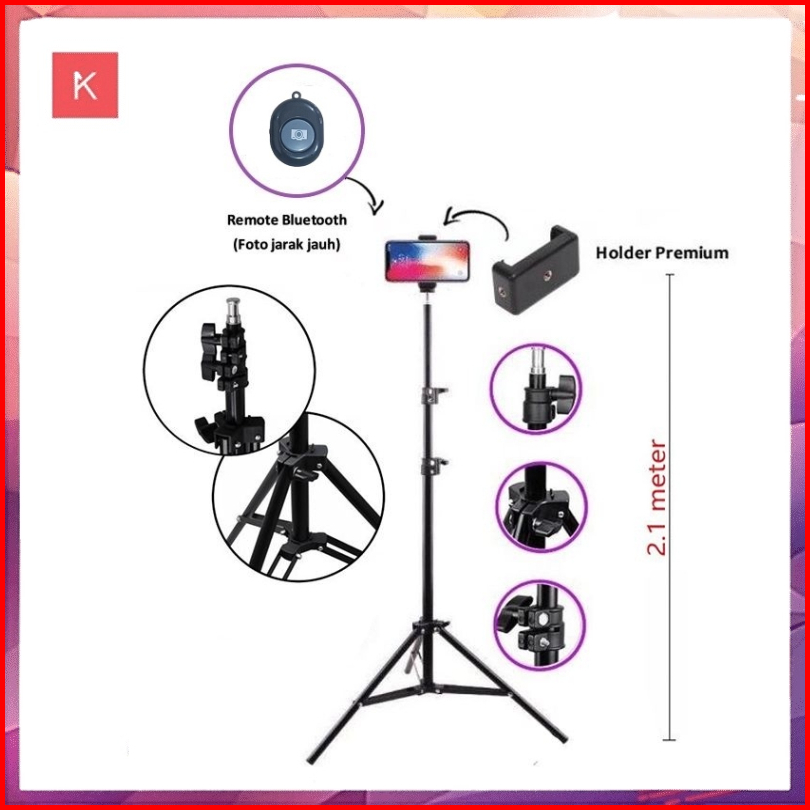 Paket Komplit Tripod 2.1m Mini Ball Head Ball Holder Premium Holder E Tomsis 1 Tombol