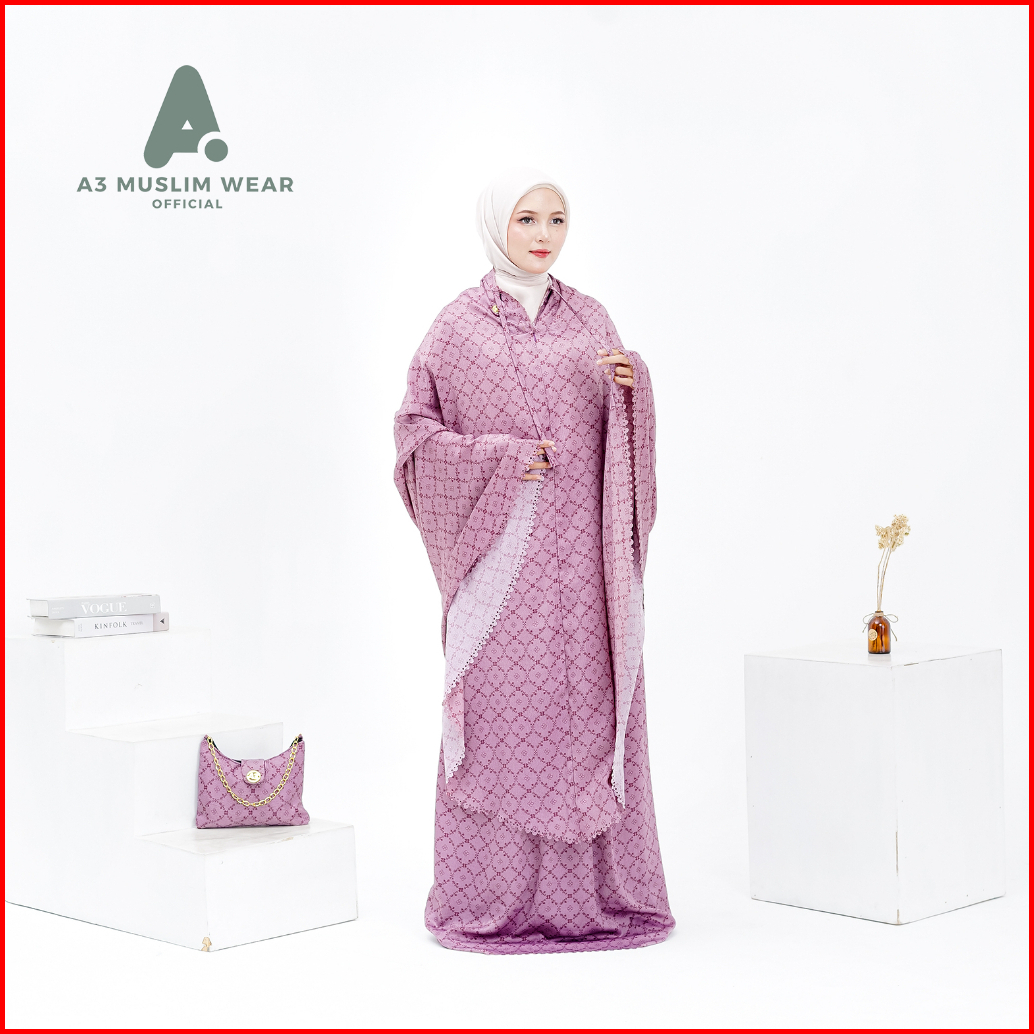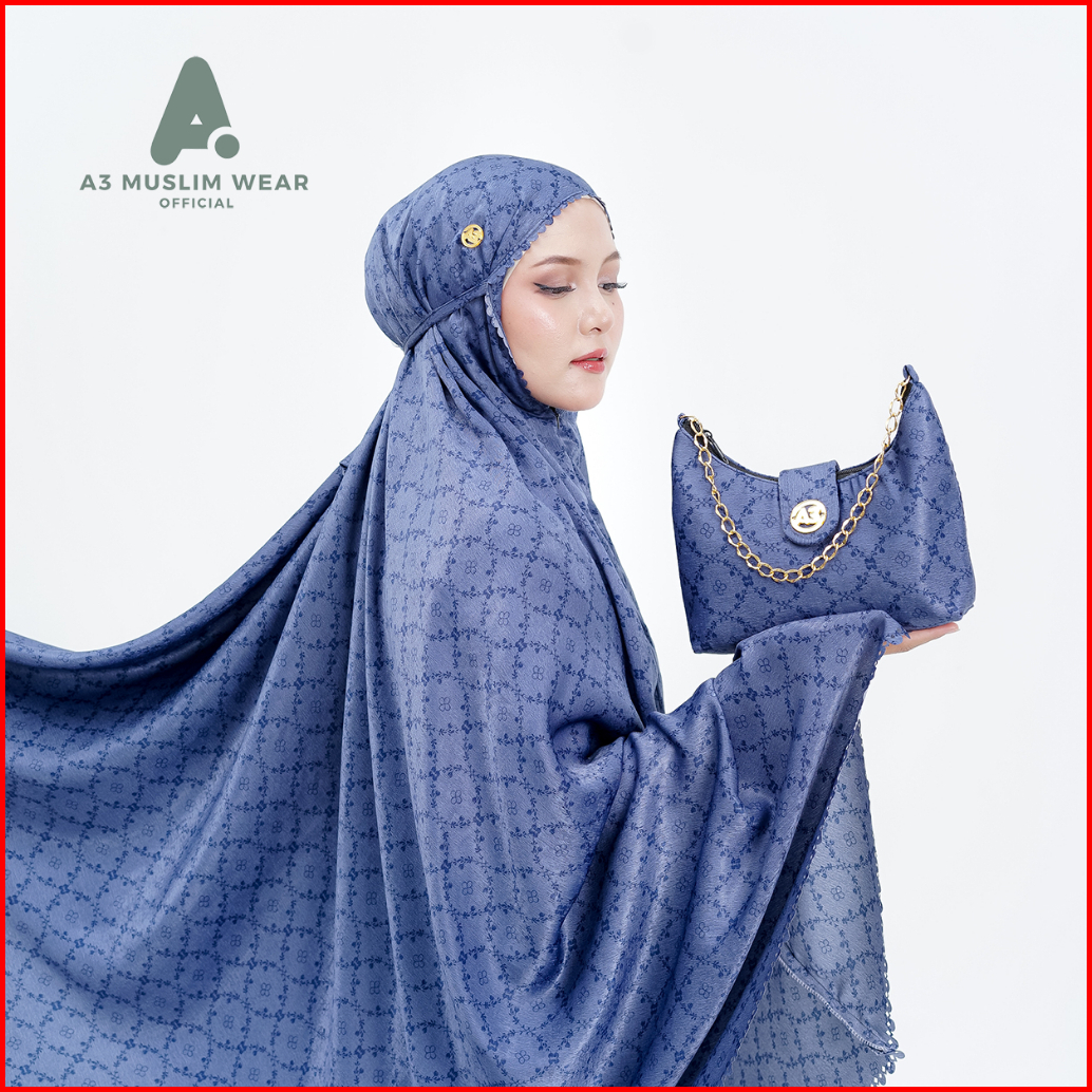 A3muslimwear - Mukena Dewasa 2in1 Santorini Silk Premium Lasercut Mewah Terbaru