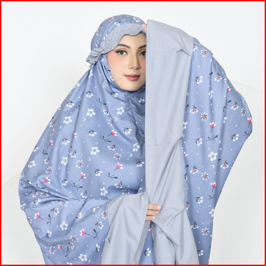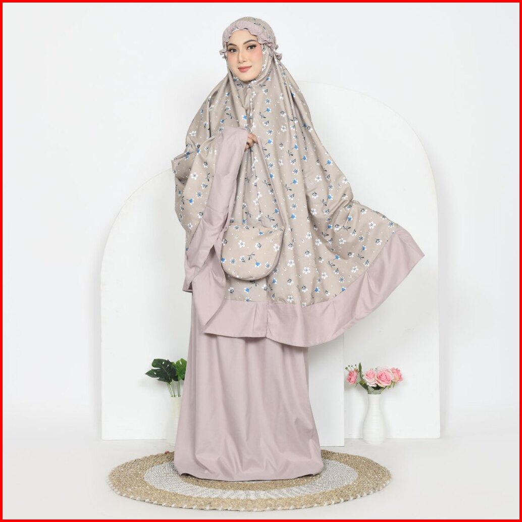 Faisal - Mukena Dewasa Resleting 2in1 Motif Bunga Kombinasi Polos Katun Premium