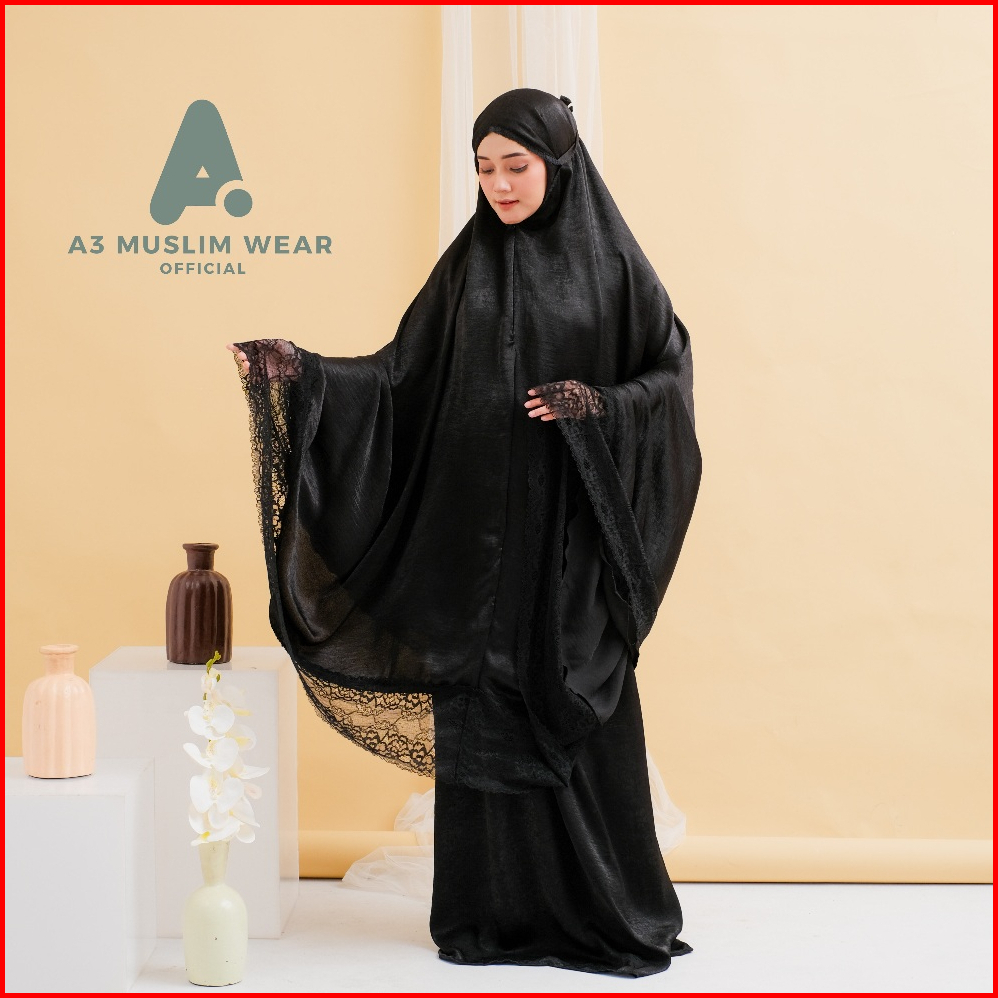 A3muslimwear - Mukena Dewasa Premium Santorini Silk 2 In 1 Renda Jumbo Terbaru 2026