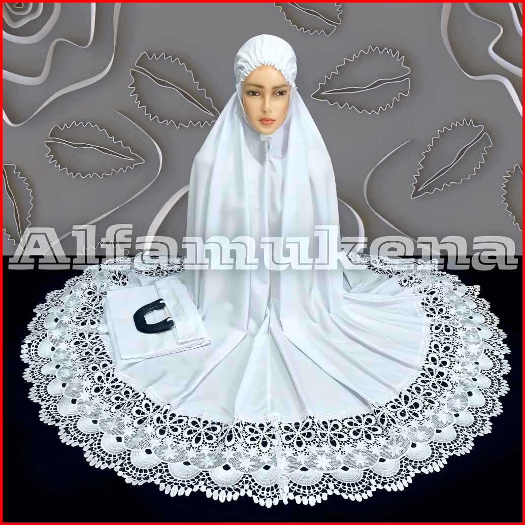 Mukena Dewasa Putih Katun Mikro Renda Gipper