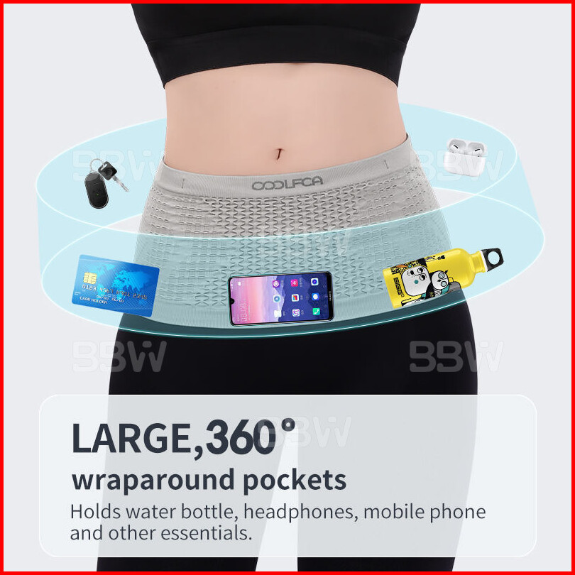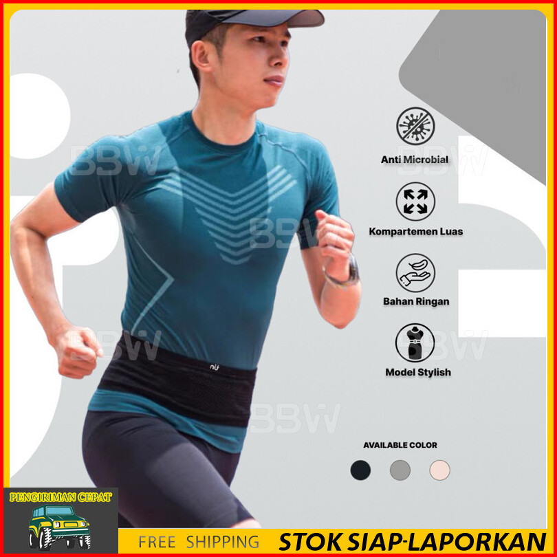 Tas Pinggang Lari Running Belt - Warna Hitam Pink Abu - Bahan Elastis Anti Air Multi Fungsi Untuk Olahraga Travel