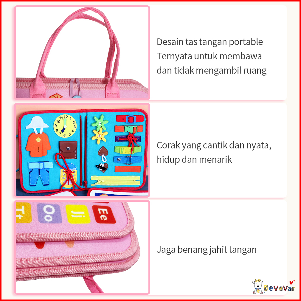 Bevavar Belajar Kognitif Bayi Papan Busy Board Untuk Perkembangan Sensorik Anak