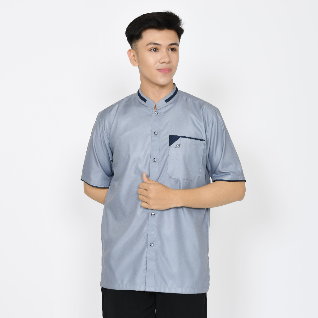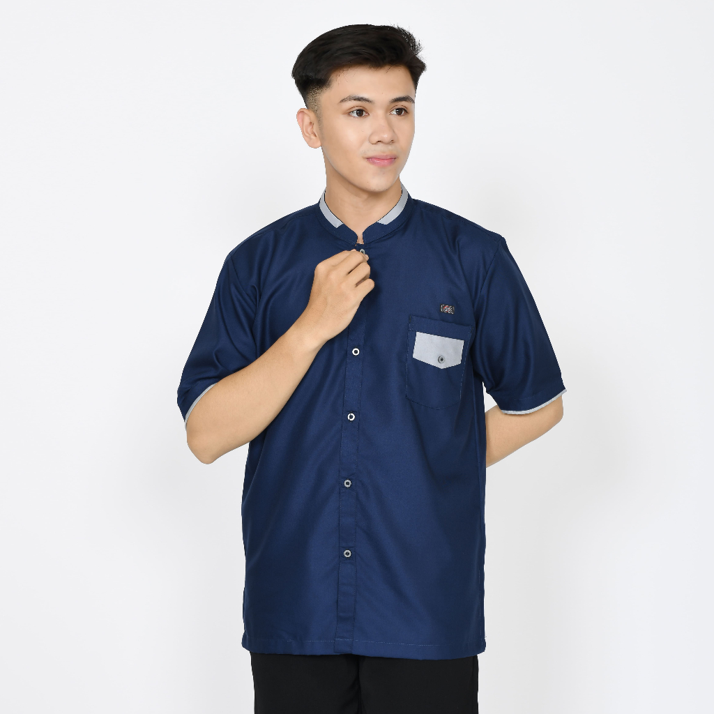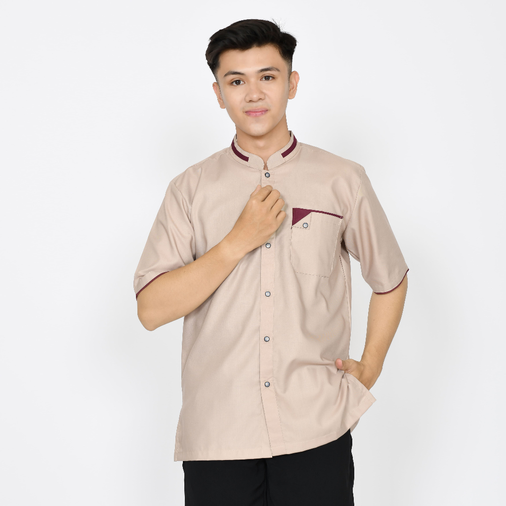 AR_Baju Koko Pria Dewasa Warna Burgundy Lengan Pendek Atasan Fashion Muslim Pria