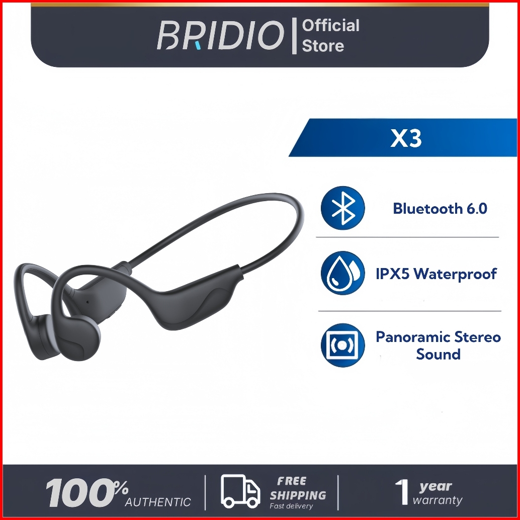 Bridio X3 Bone Conduction Headset Nirkabel Open Ear Bluetooth 5.3 Untuk Olahraga Lari Ipx5 Waterproof Type-c Garansi Res
