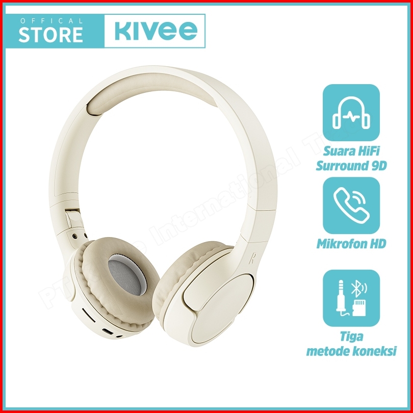 Kivee Headphone Wireless Bluetooth 5.3 Kv-tw143 Krem Headset Music Gaming 6d Hifi Makaron Original