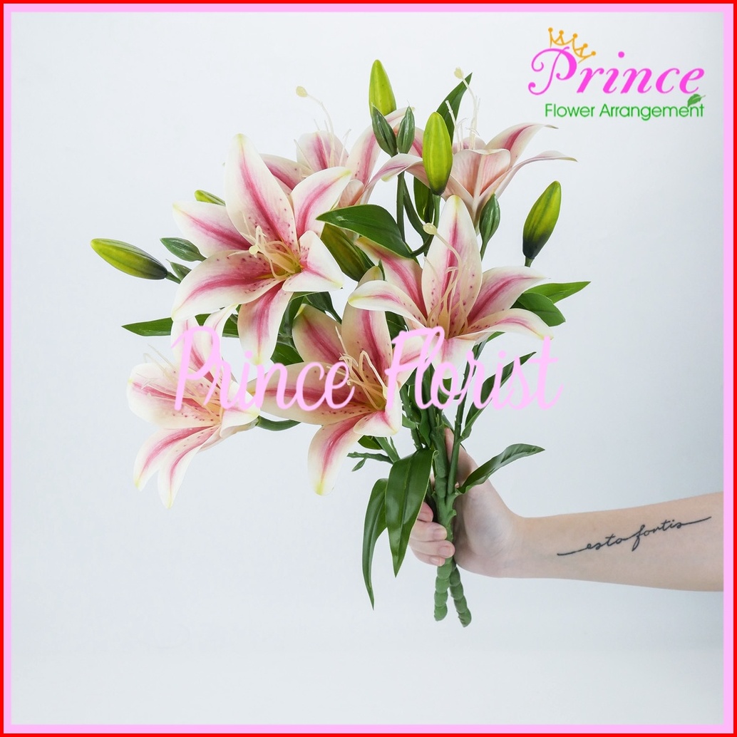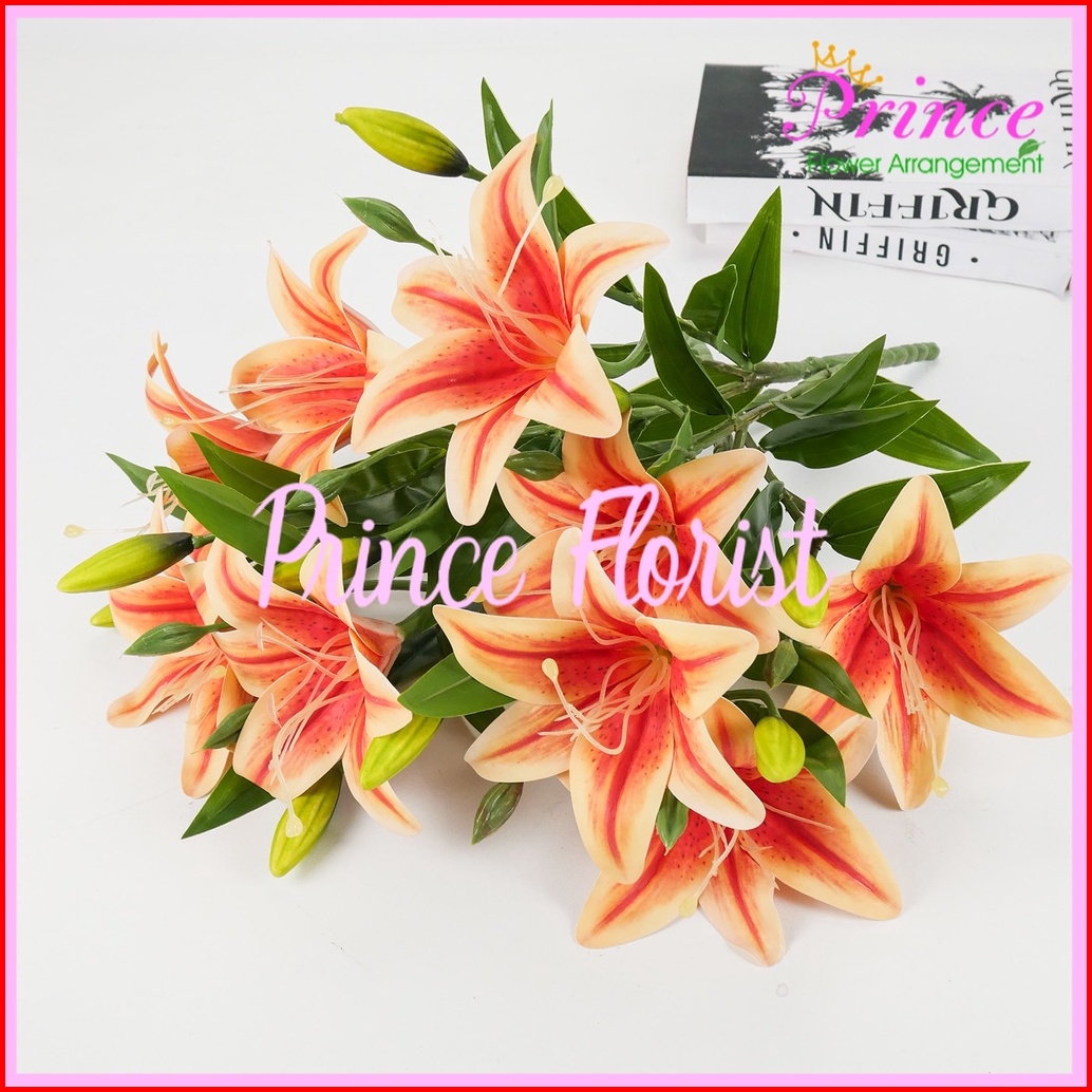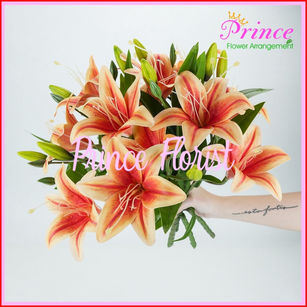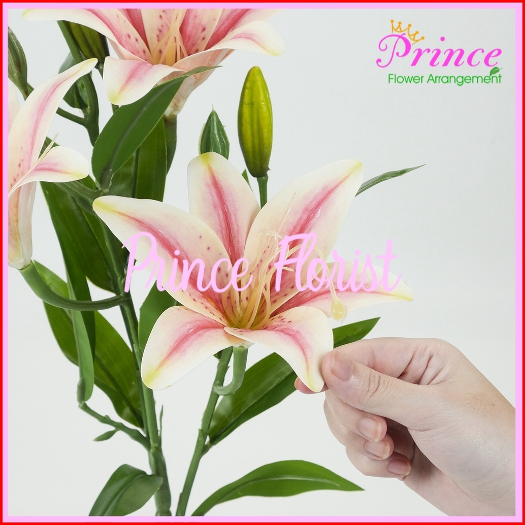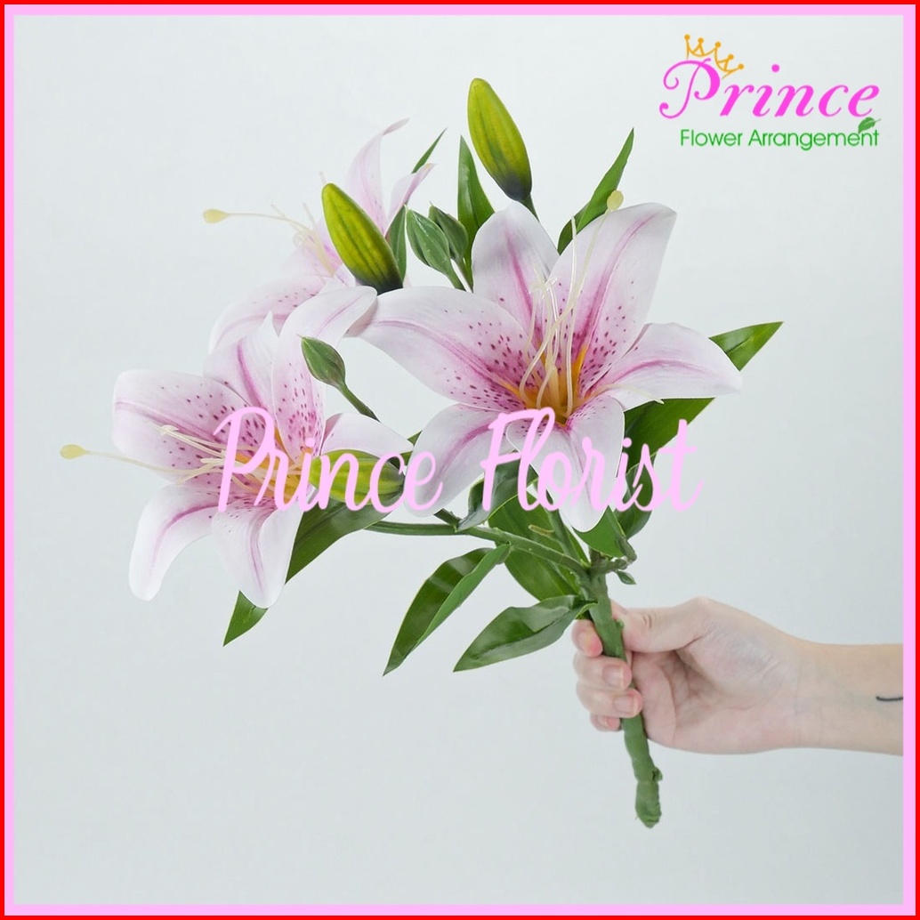 Bunga Lily Latex Cabang 3 Bunga Lili Palsu Bahan Lateks Artificial Real Touch Silk Flower Tiger Lilies Hiasan Hotel Buck