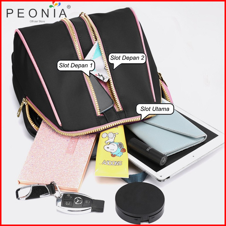 Peonia Pna Ollin Water Resistant Tas Ransel Wanita Import Korea Style Punggung Kantor Kerja Sekolah Kuliah Outdoor Trend