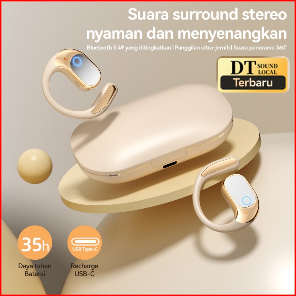 Touitech Sport Headset Bluetooth 5.4 Wireless Earphone Clip-on Suara Jernih Baterai Awet Tahan Debu Dan Keringat Hs350