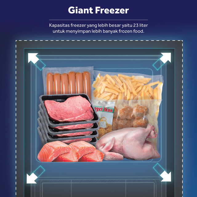 AQUA Elektronik AQR-D188(MBL) - Blue - Kulkas 1 Door - 145 L - Freezer Besar - Ramah Lingkungan - Semi Auto Defrost