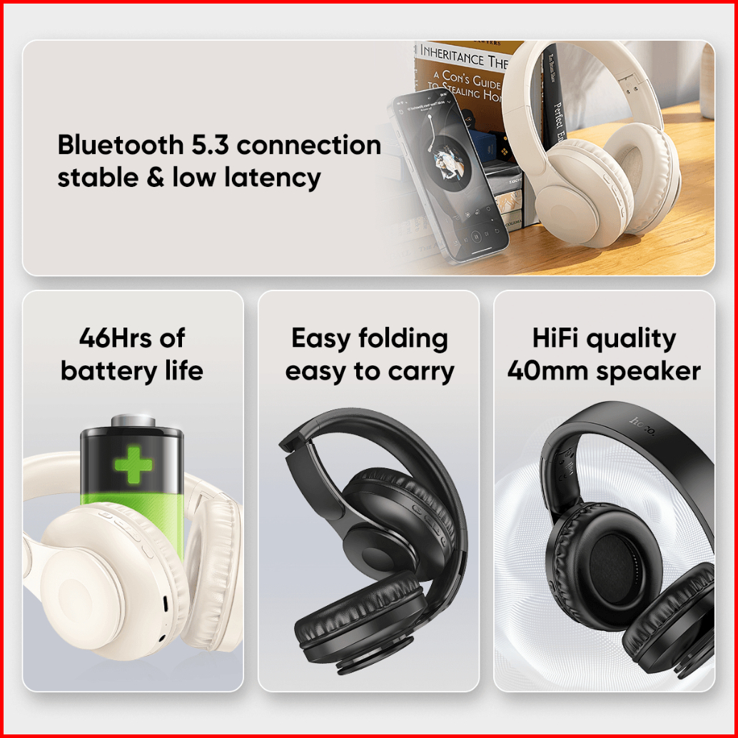 Hoco Headphone Bluetooth 5.3 Wireless Over-ear Headset Earphone Hifi 46h Playtime Dan Microphone W45