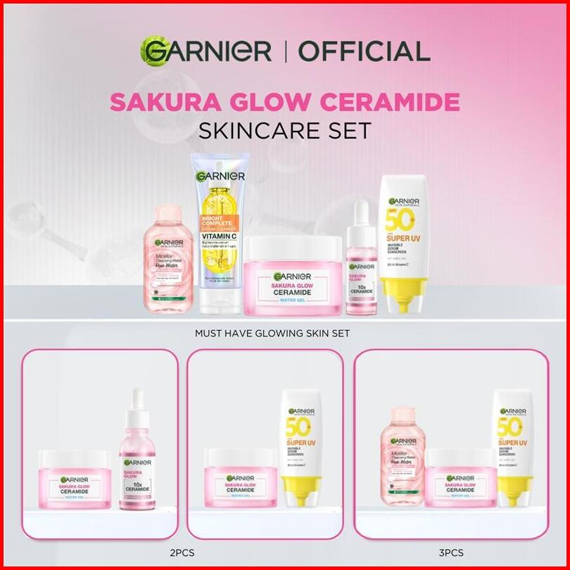Garnier Paket Skincare 1 Set Lengkap Sakura Glow Ceramide Skin Barrier 2pcs 3pcs 5pcs Day Cream Tone Up Mencerahkan Mois
