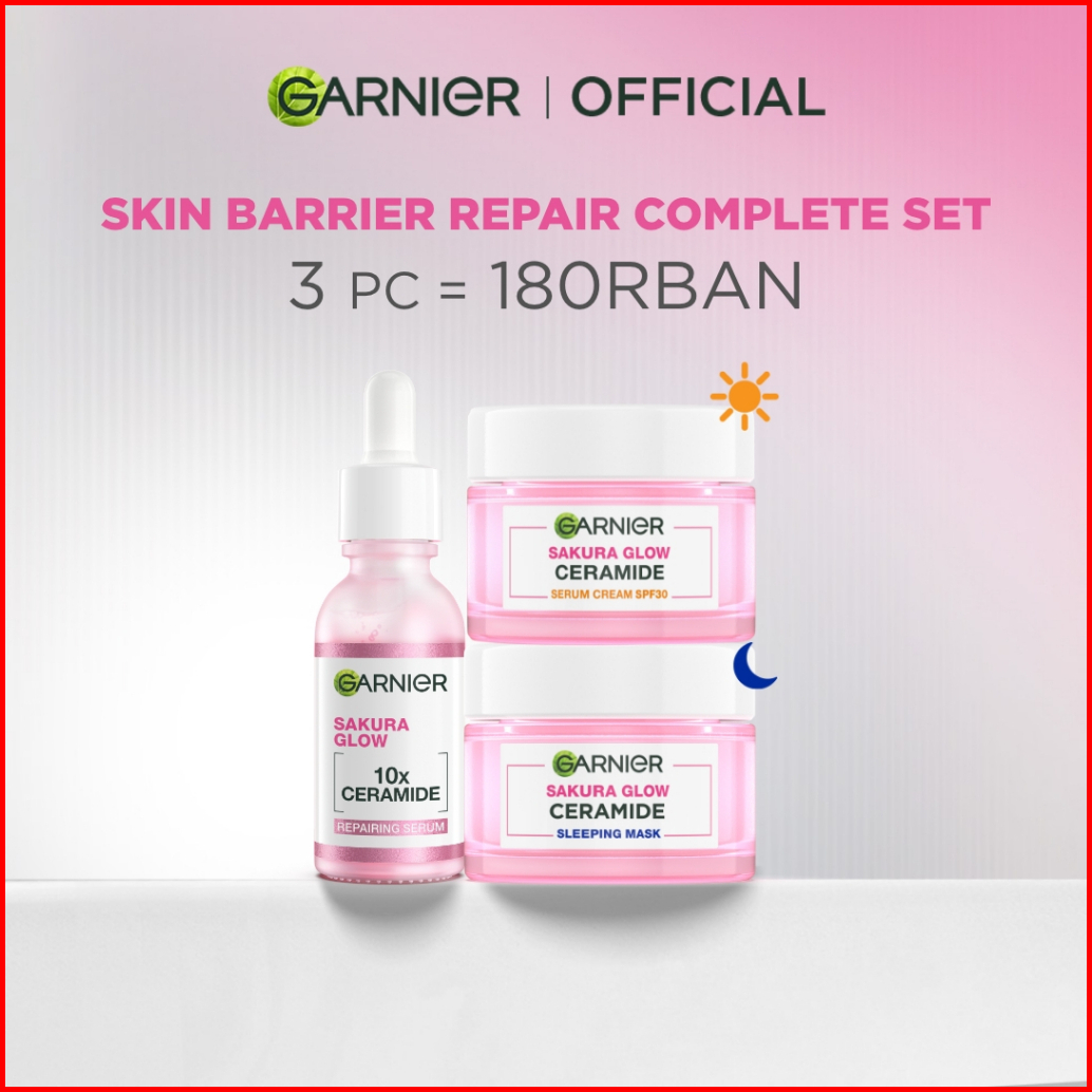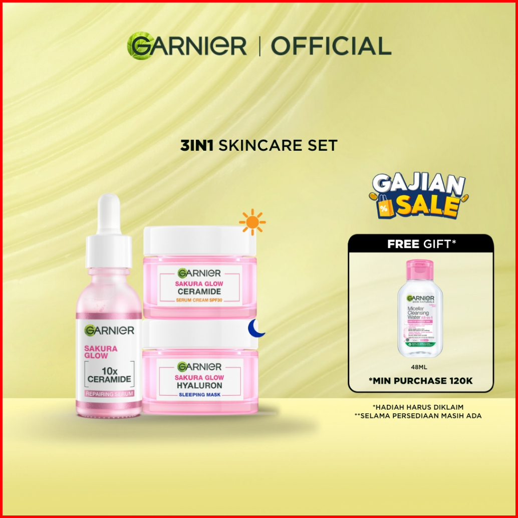 Garnier Paket Skincare 1 Set Lengkap Sakura Glow Ceramide Skin Barrier Hydrating Daily Set Serum Cream Day Cream 50 Ml N