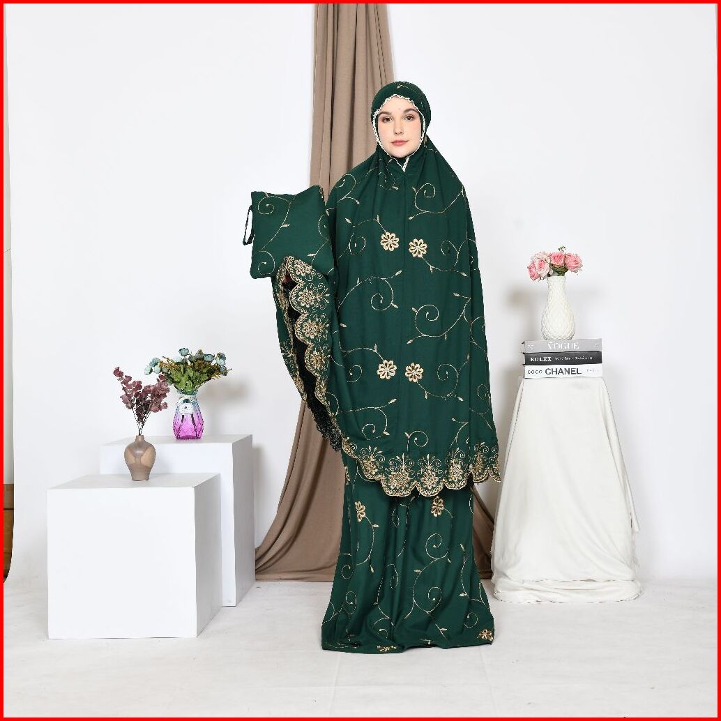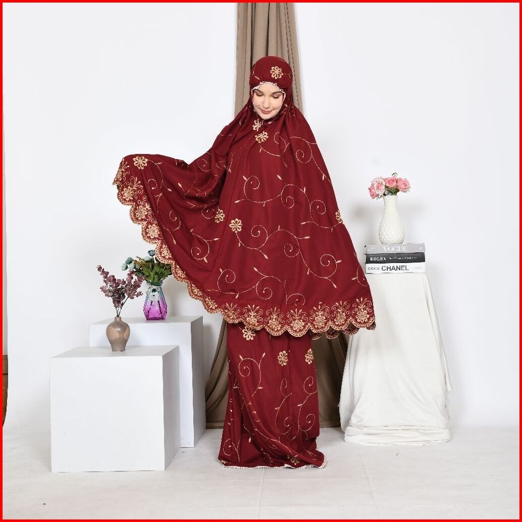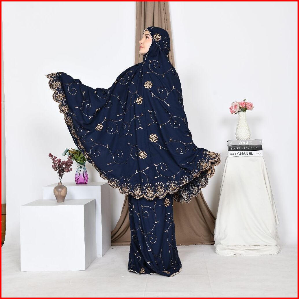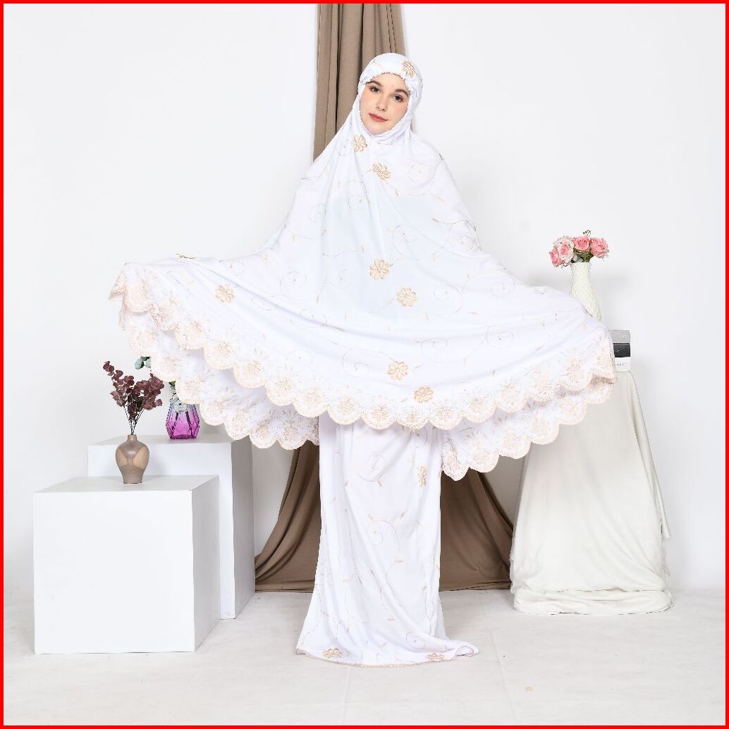Threelook - Mukena Bordir Gracella Bahan Katun Premium Ukuran Jumbo Renda Mewah