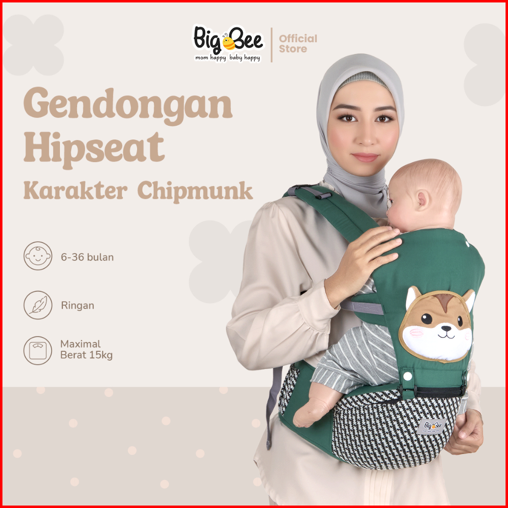 Big Bee Gendongan Bayi Hipseat Karakter Chipmunk Series - Bbg0030hijau