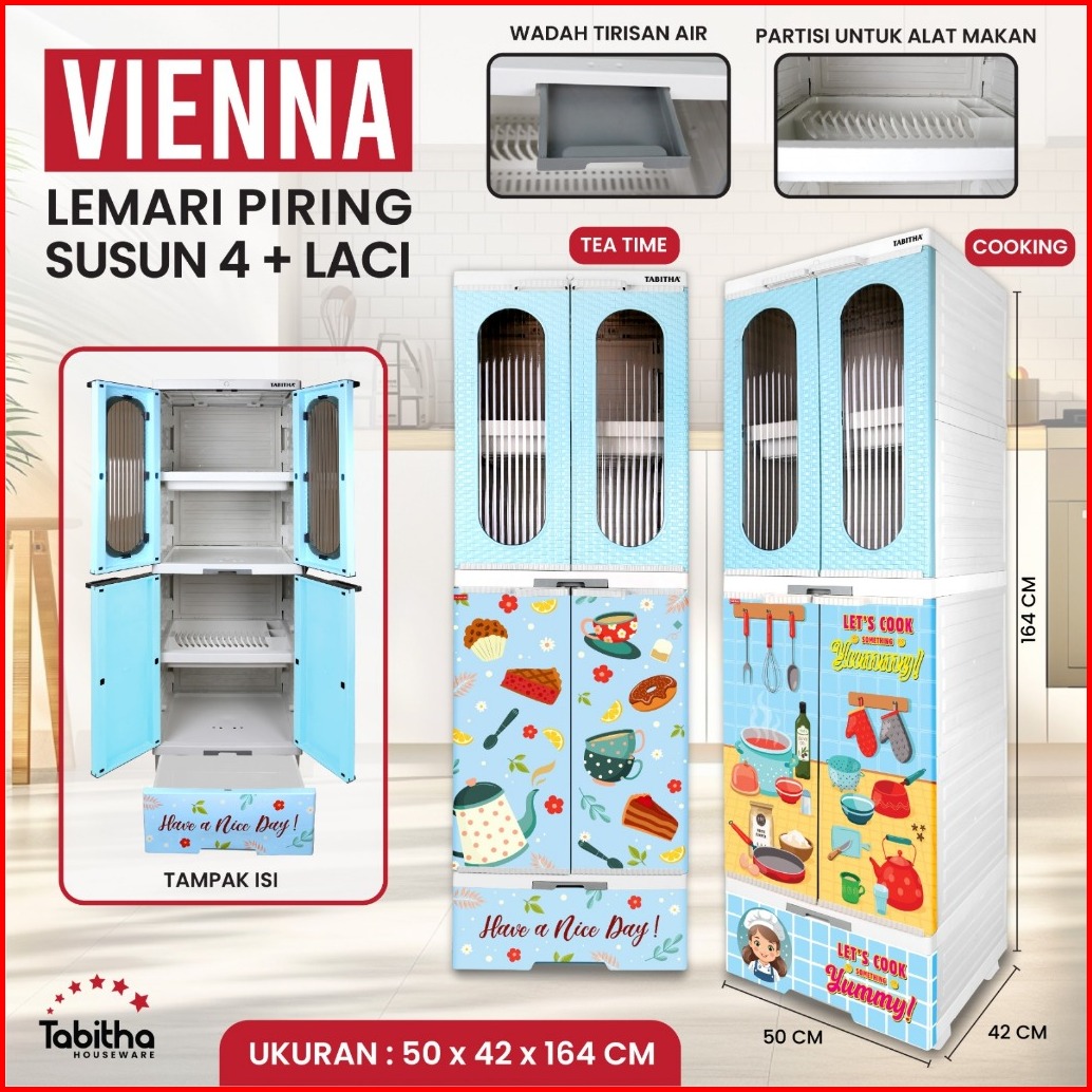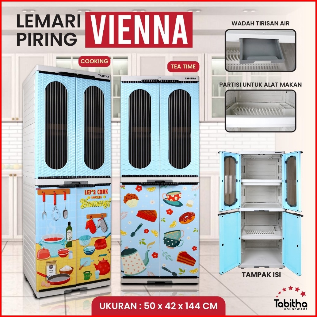Tabitha Rak Lemari Piring Jumbo Printing Lemari Dapur Estetik Serbaguna - Rak Piring Vienna