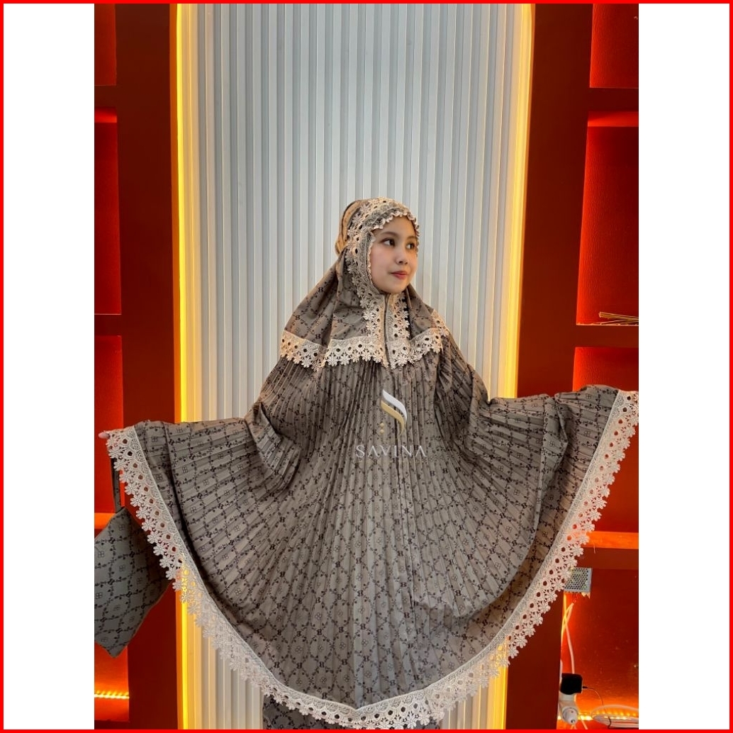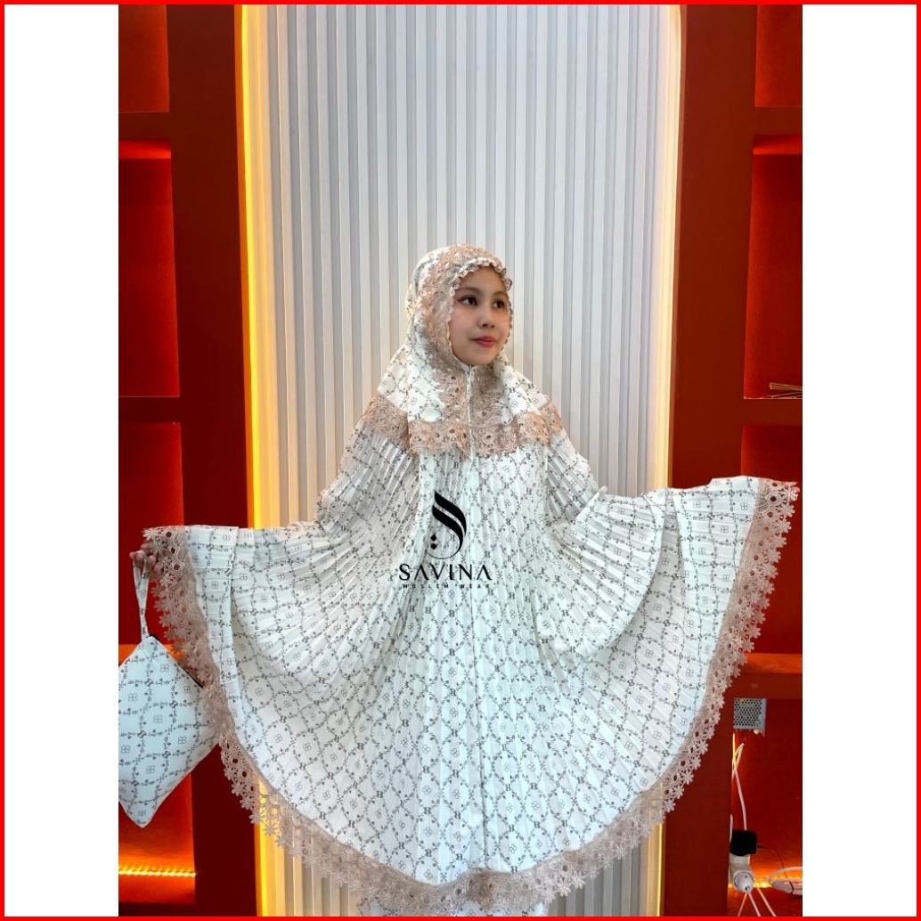 Savina - Mukena Dewasa Plisket Motif Santorini Mikayla Series 2in1 Katun Premium Renda Mewah