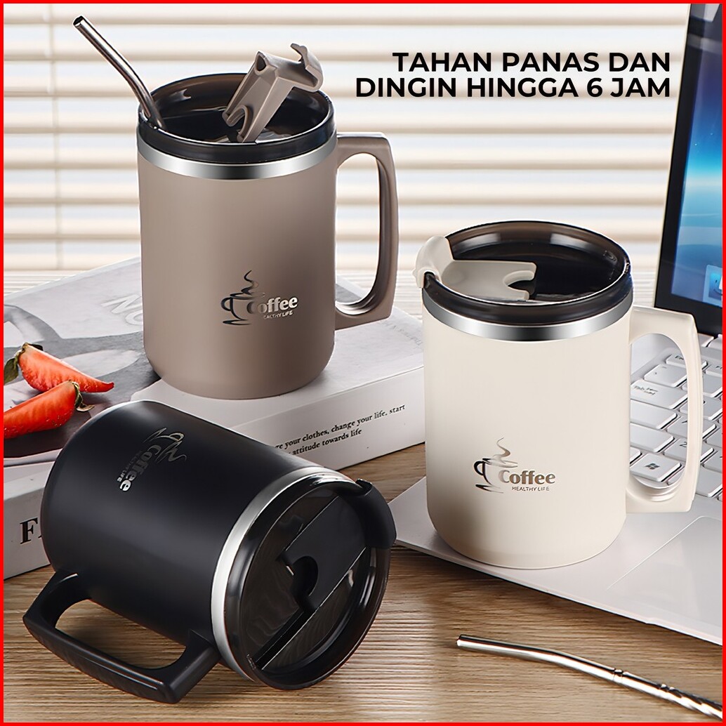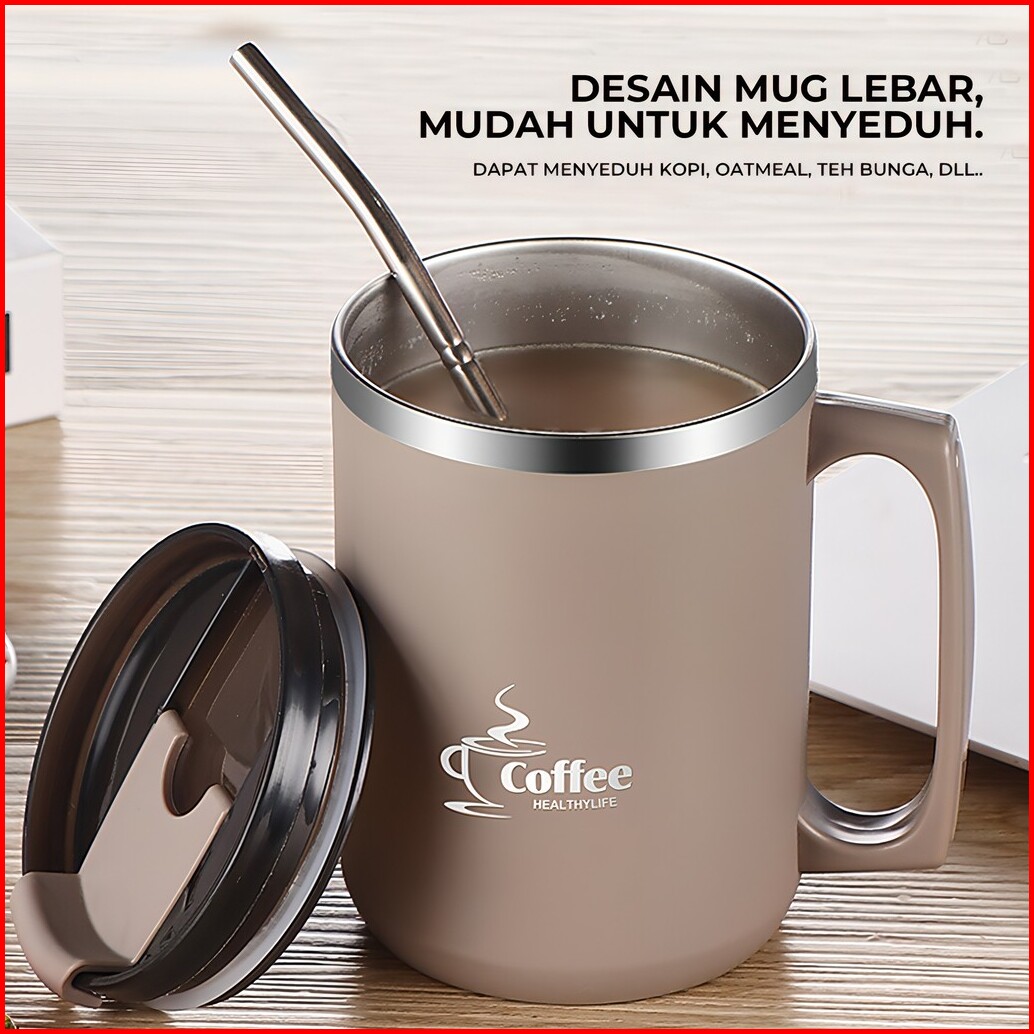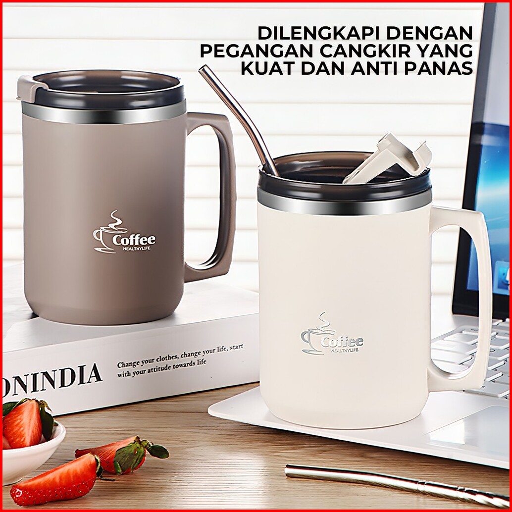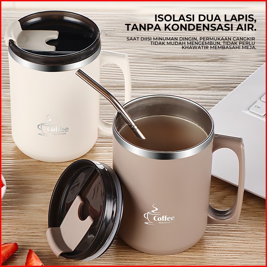 Heefn 500ml Gelas Stainless Gelas Kopi Teh Mug Coffee Tahan Panas Dingin Anti Tumpah
