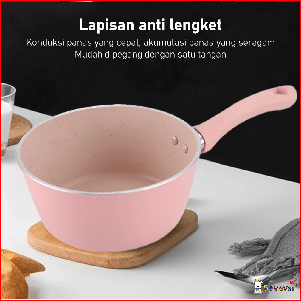 Bevavar 12 14 16cm Panci Susu Mpasi Anti Lengket Panci Rebus Enamel Milk Pot Panci Teflon Marble
