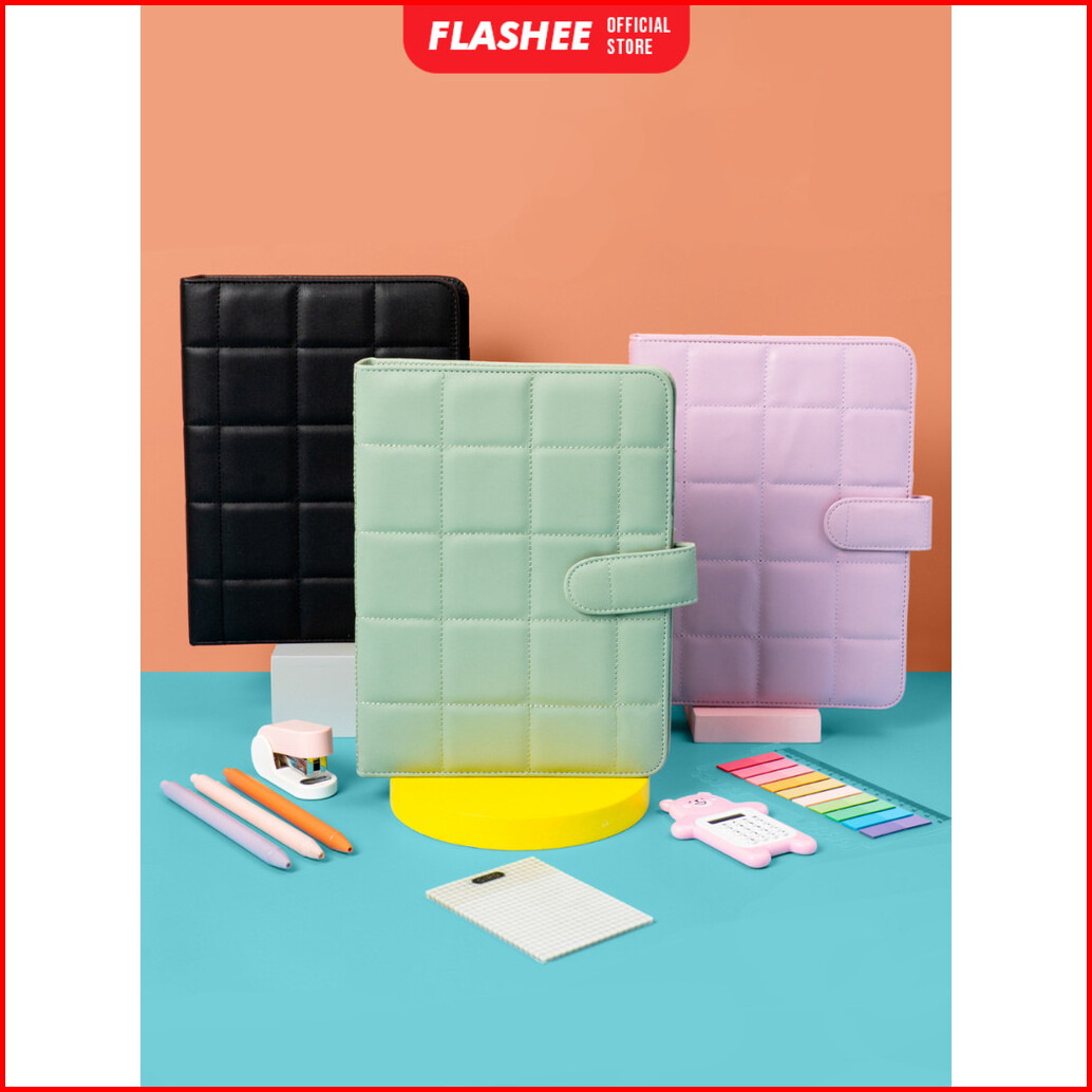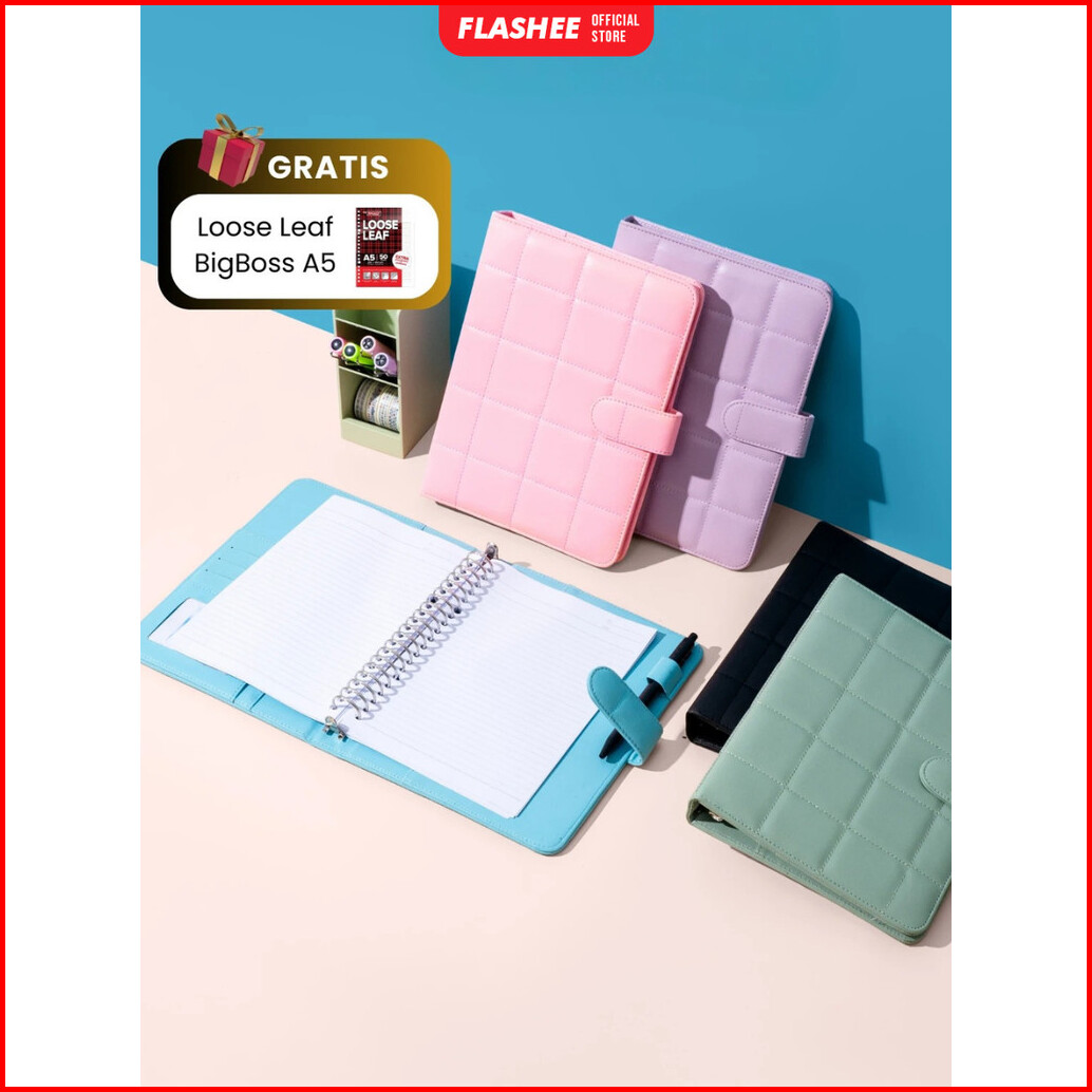 Flashee Binder Polos Eksklusif A5 Puffy 20 Ring Buku Agenda Kulit Sintetis Pu Leather Binder Polos