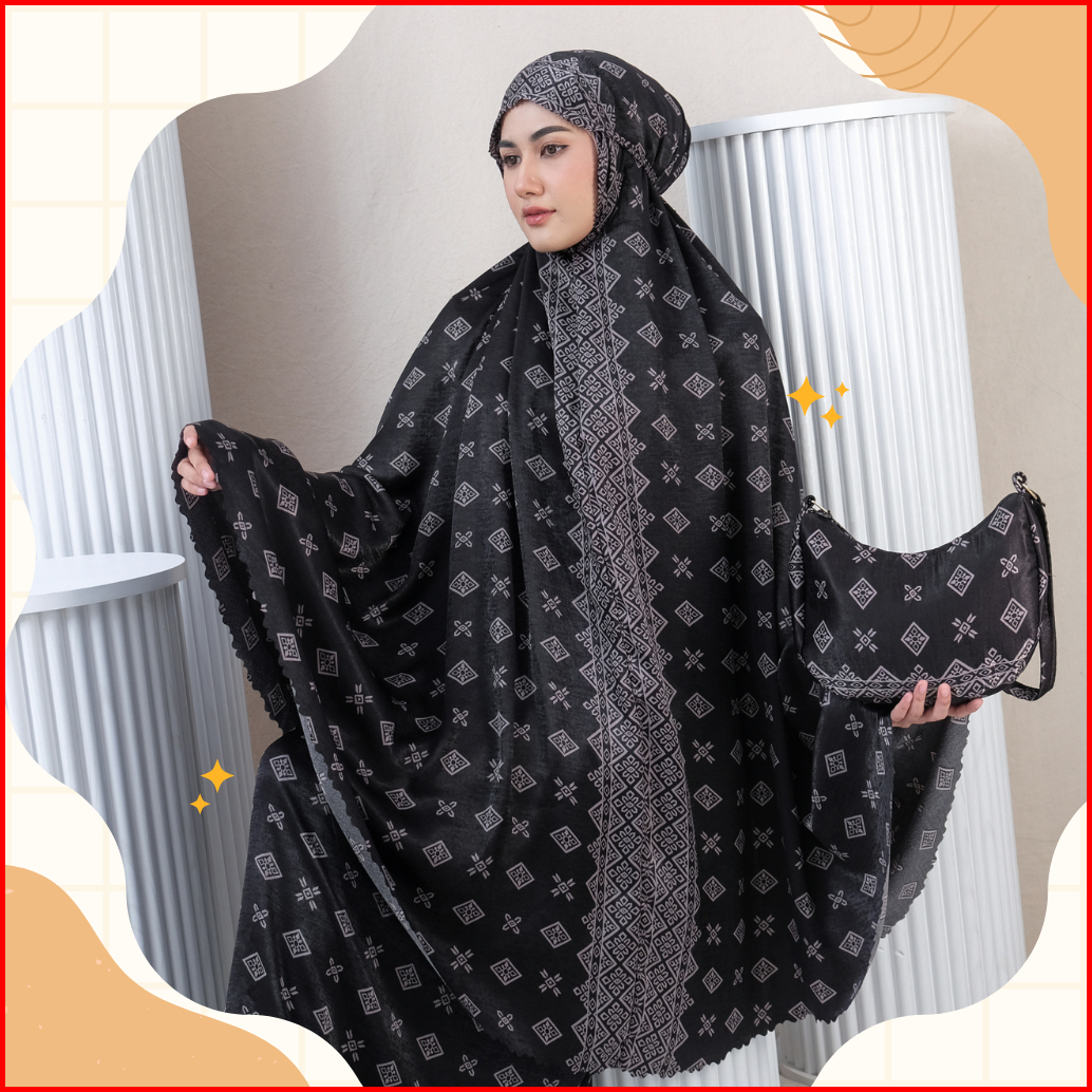 Alshal - Mukena Dewasa Premium 2in1 Santorini Silk Motif Laser Cut Alshal Series