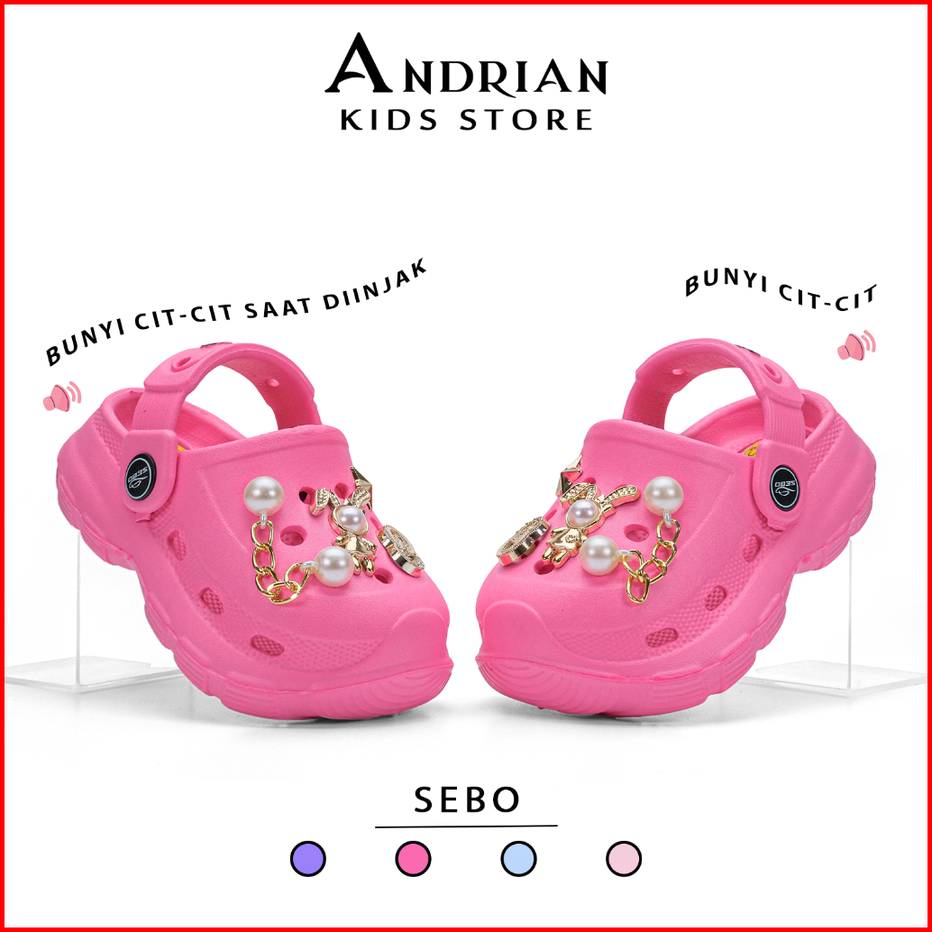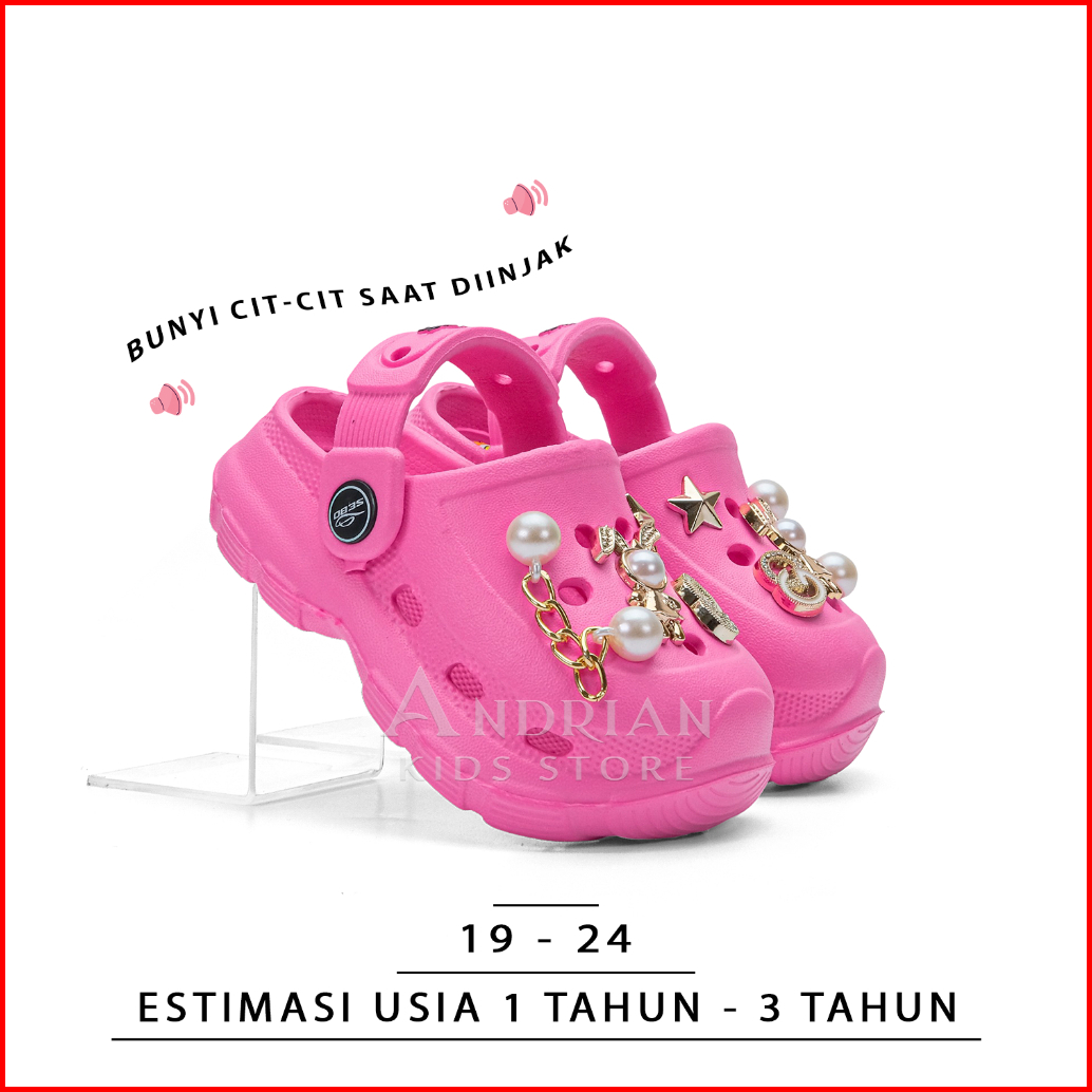 Sebo New Andrian - Sandal Anak Cewek Krokz Baim Cit-cit Unik Sendal Mewah Rantai Mutiara Gemas 1-3 Tahun Spx A