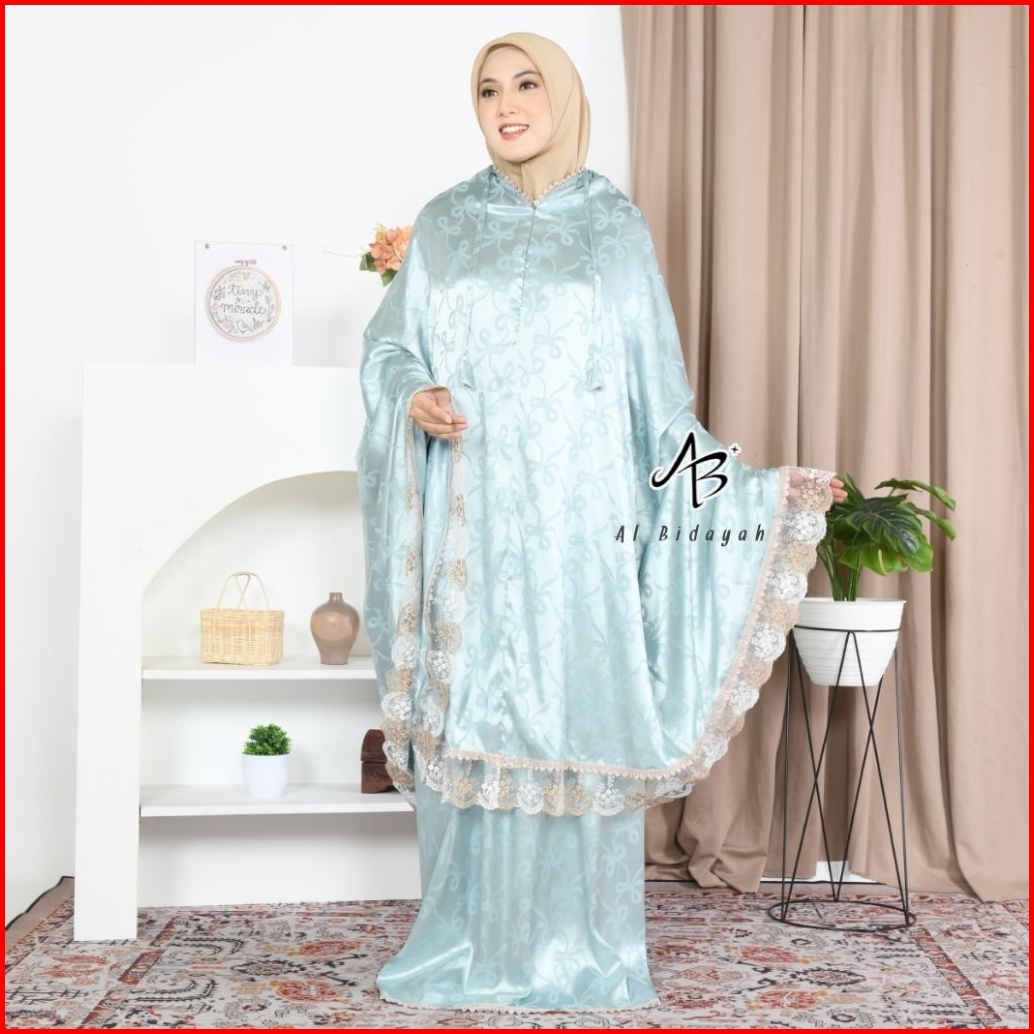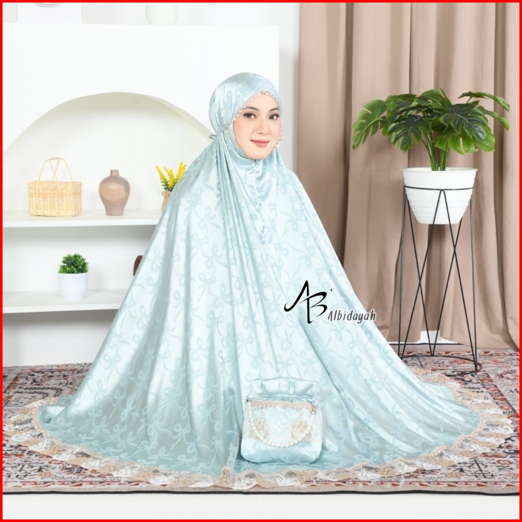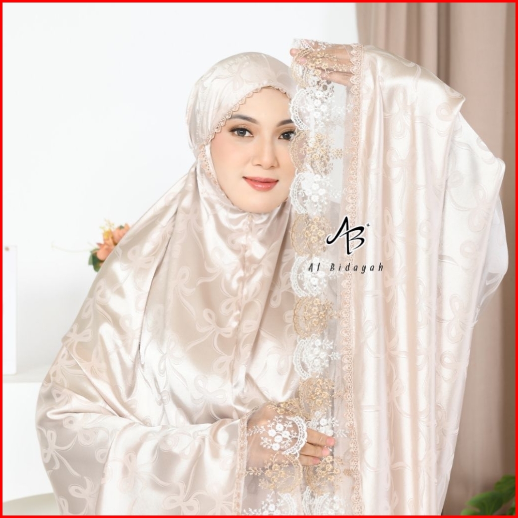 Mukena Dewasa Coquette Ribbon Pita 2in1 Sutra Silk Armaniee Jacquard Jumbo Renda Mewah Premium