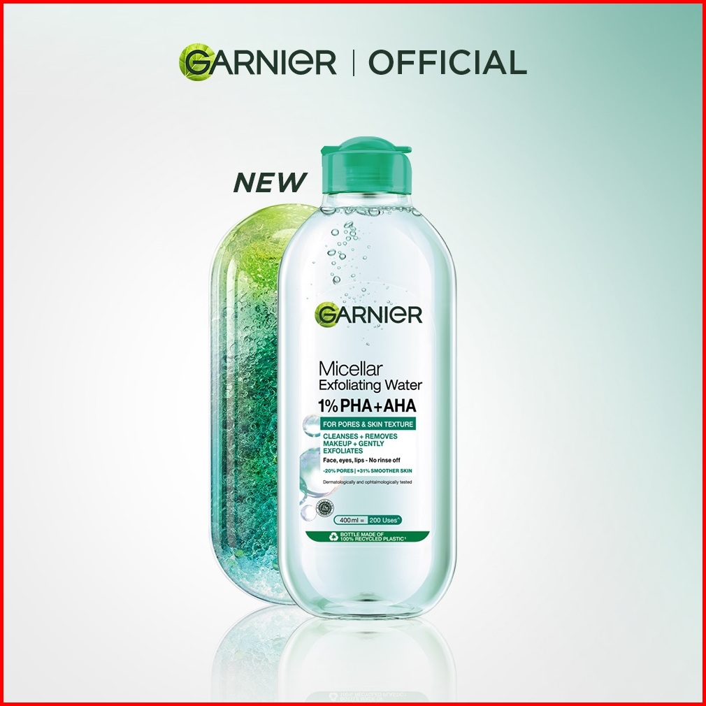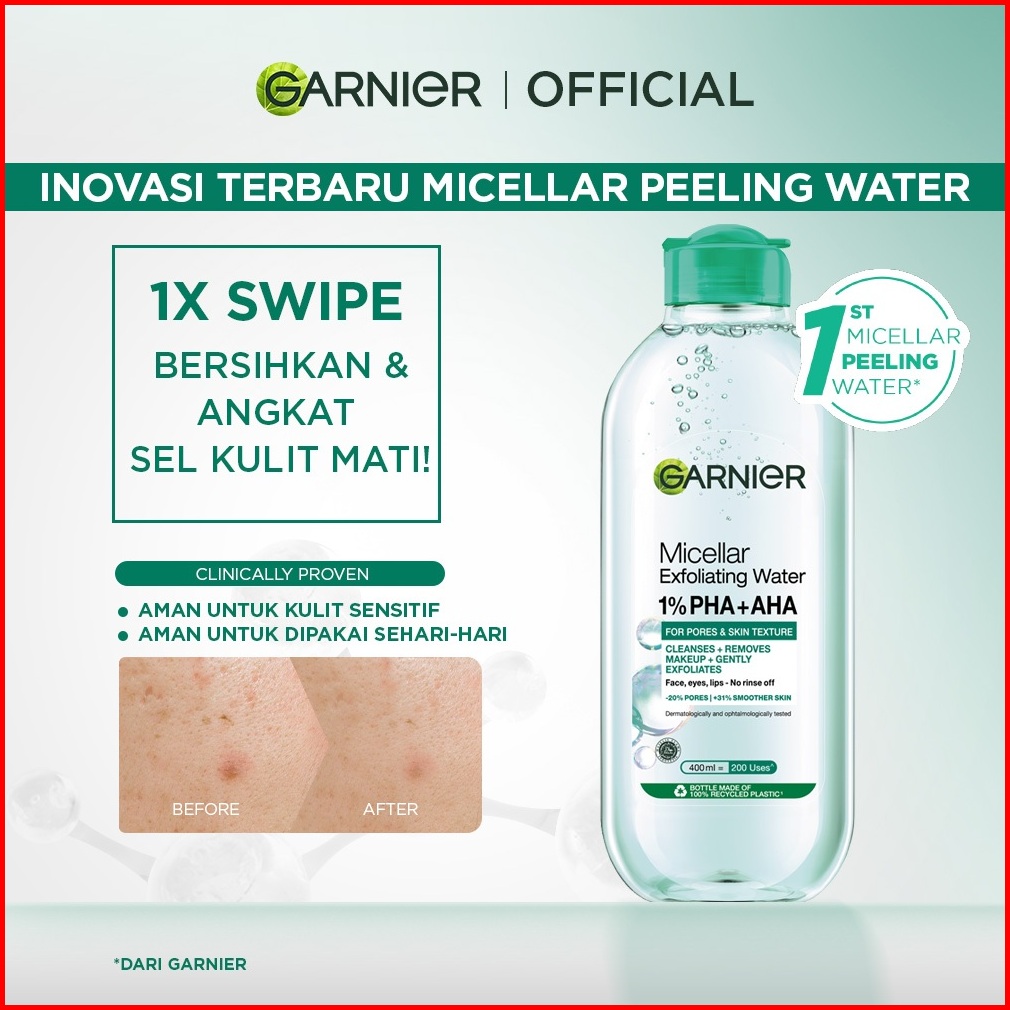 Baru Garnier Micellar Water Peeling Exfoliating 1 Aha Pha - 400ml Skincare Pembersih Wajah Make Up Untuk Mengangkat Sel