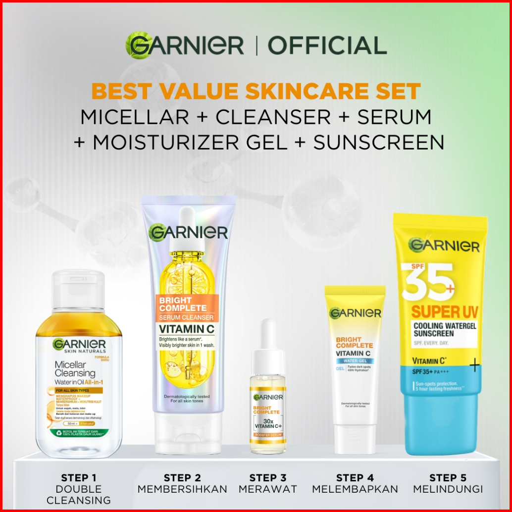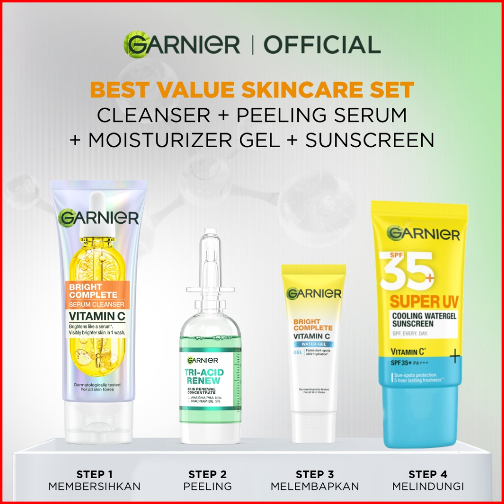 Garnier Paket Skincare Peeling 1 Set Lengkap Serum Exfoliating Eksfoliasi Wajah Daily Set Tone Up Mencerahkan Moisturize