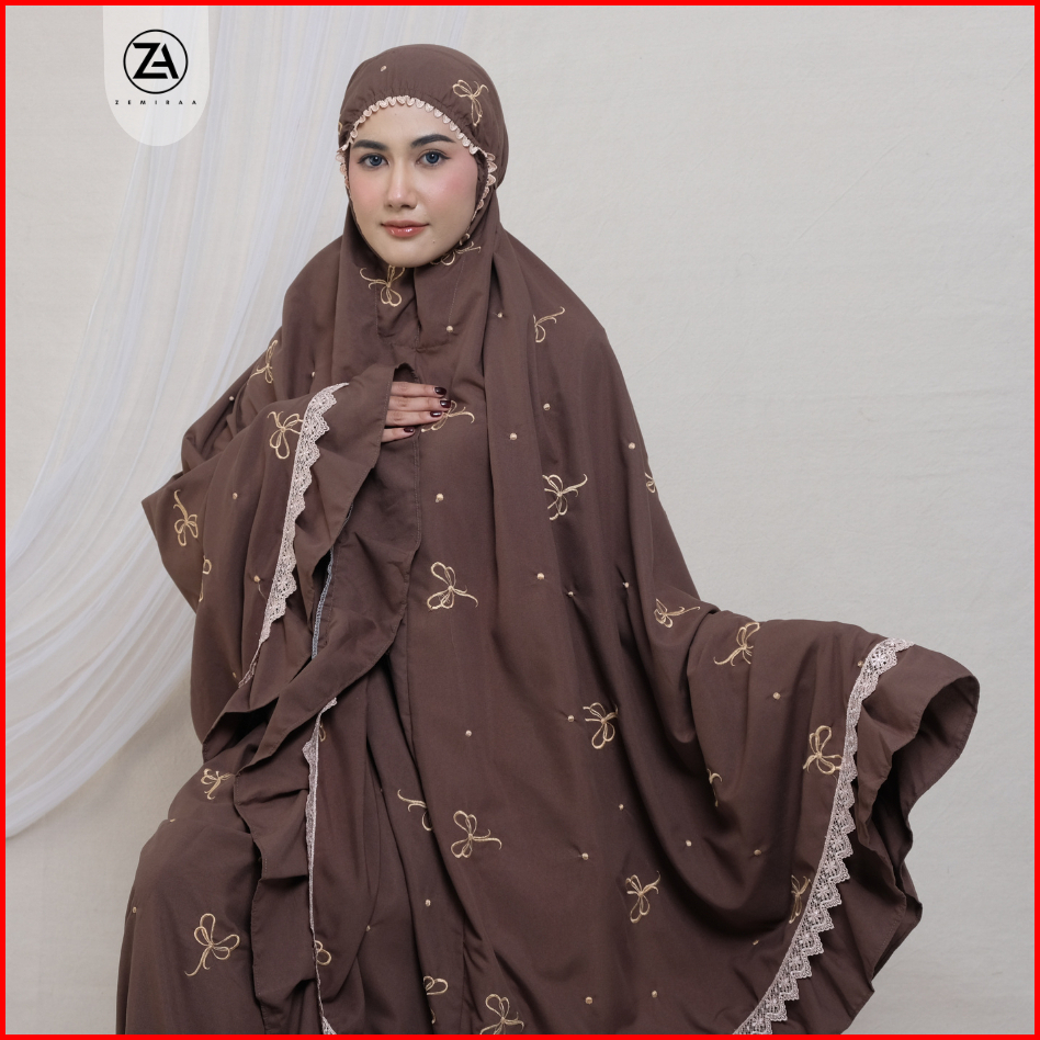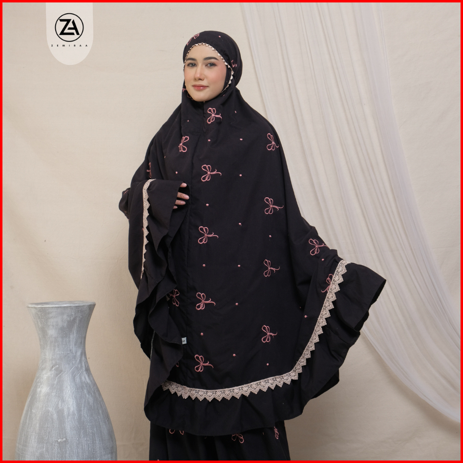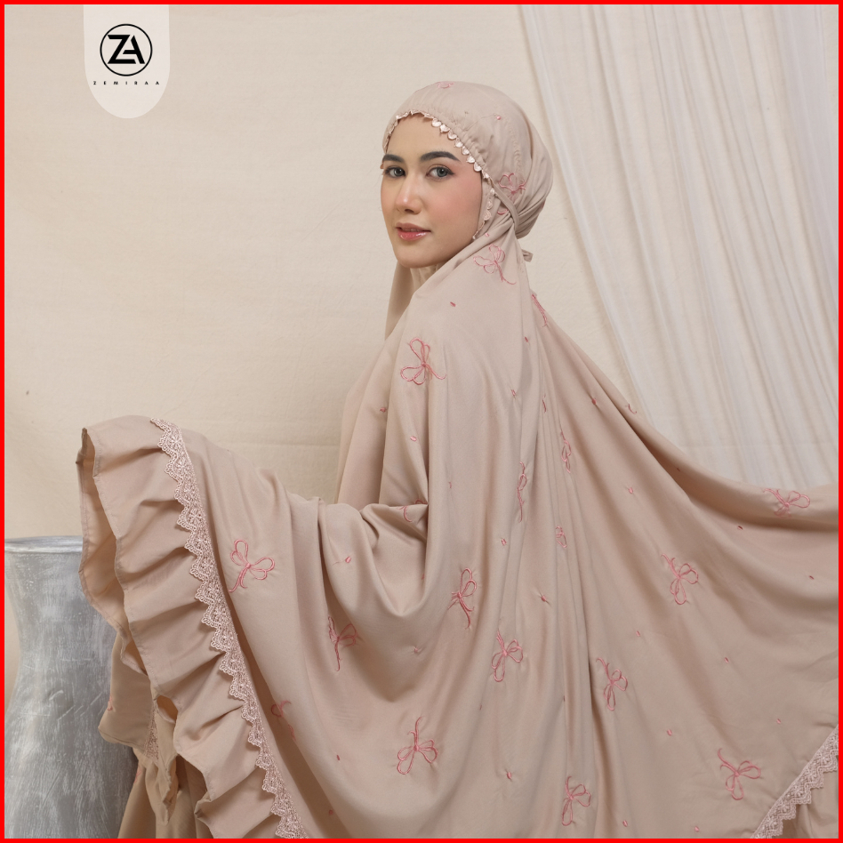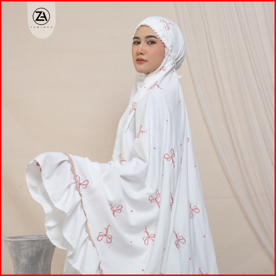 Zemira - Mukena Dewasa Ribbon Coquette Bordir Pita Rempel Renda Mewah