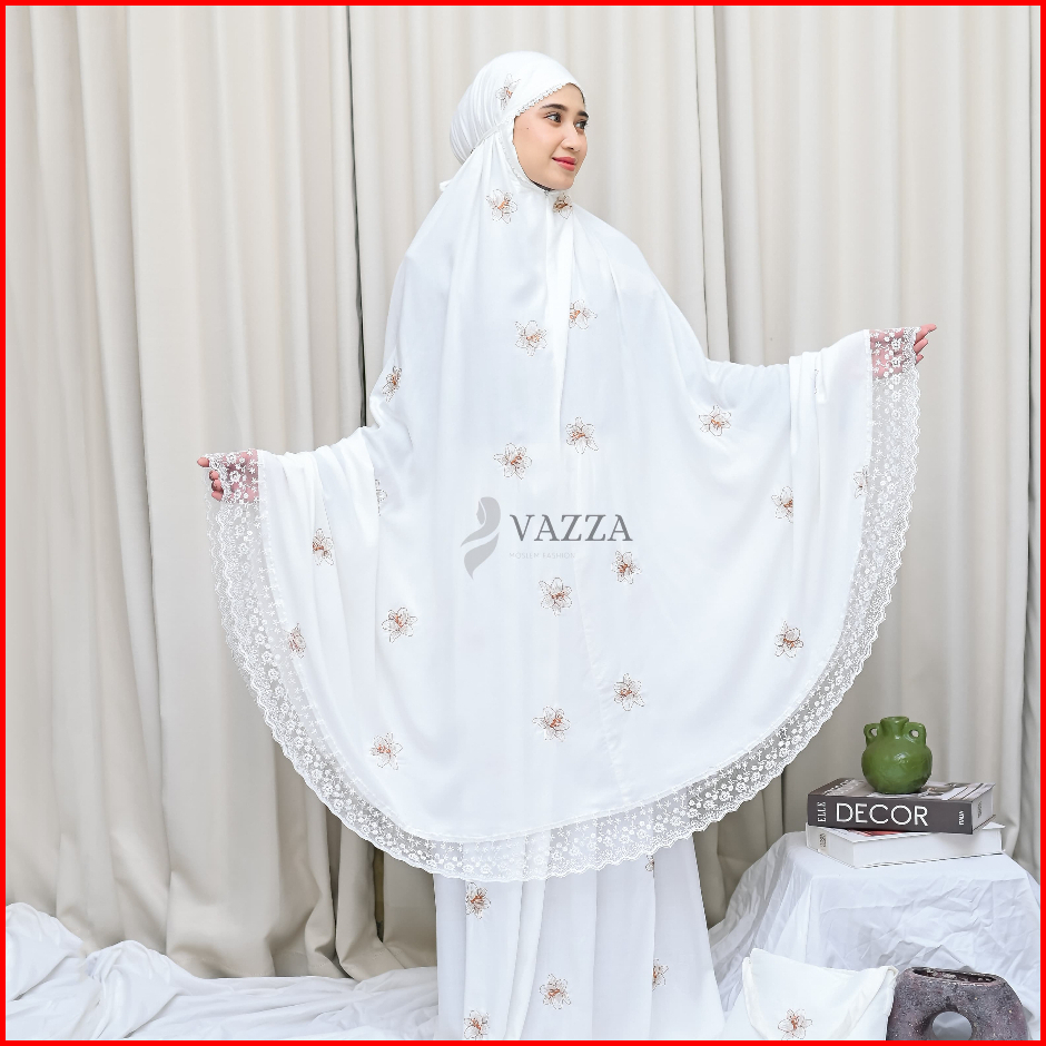 Mukena Dewasa Bordir 2in1 Rayon Putih Tulang Series Terbaru Kekinian Alena