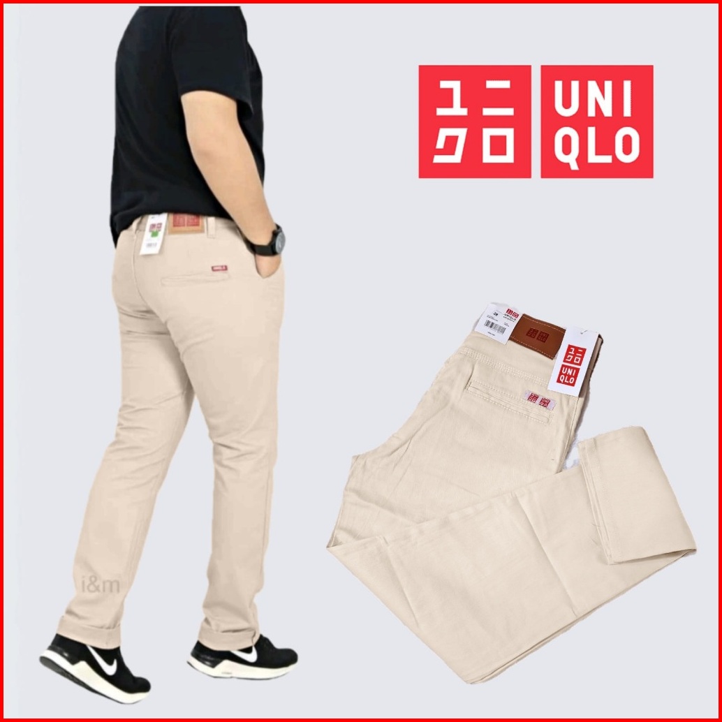Celana Chinos Panjang Uni Qlo Pria Slim Fit Formal Casual Premium