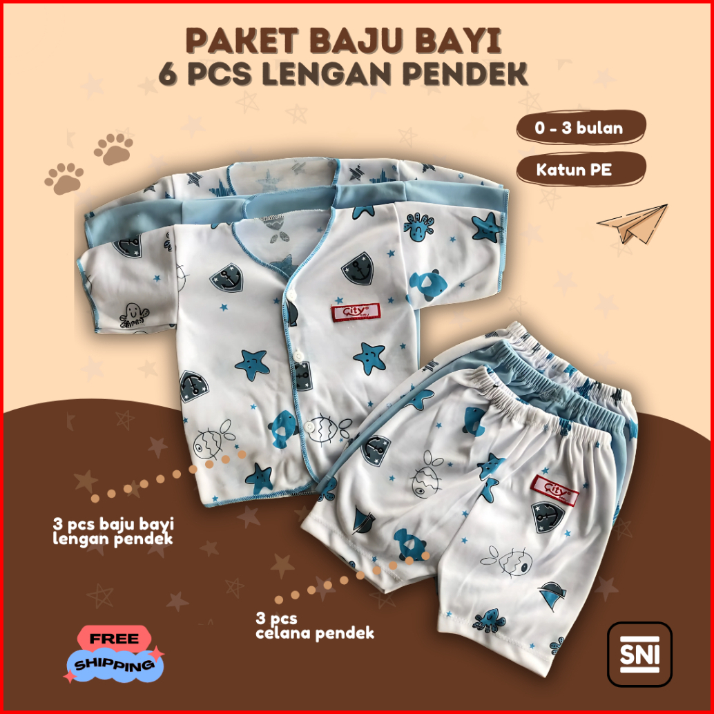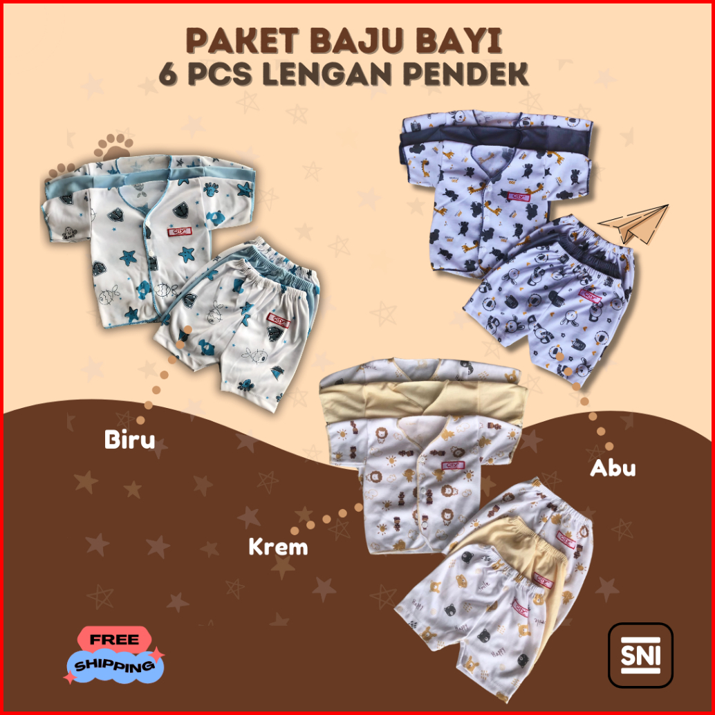 Paket 6 Pcs Baju Bayi Baru Lahir Paket Baju Bayi New Born 0 - 3 Bulan Kado Lahiran Bahan Lembut