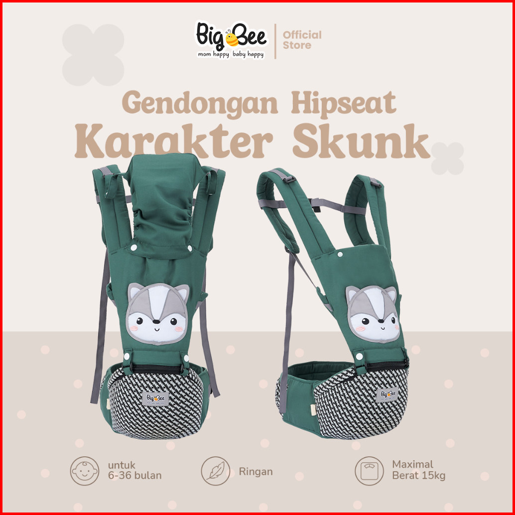 Big Bee Gendongan Bayi Hipseat Karakter Skunk Series - Bbg0031hijau