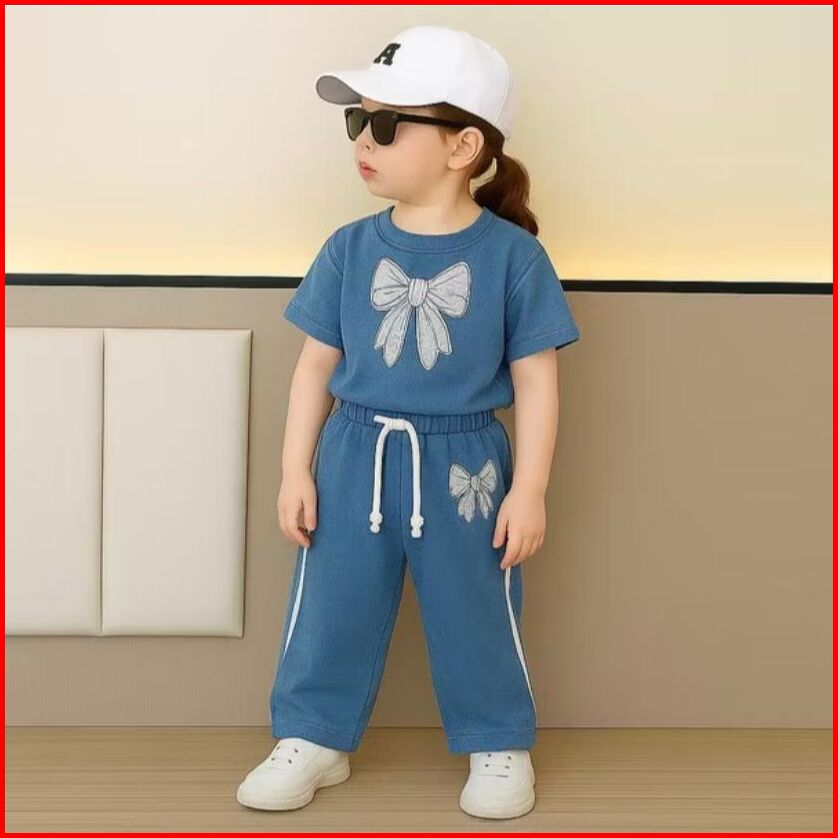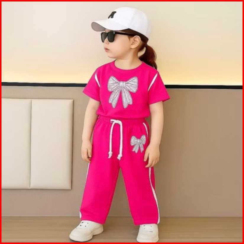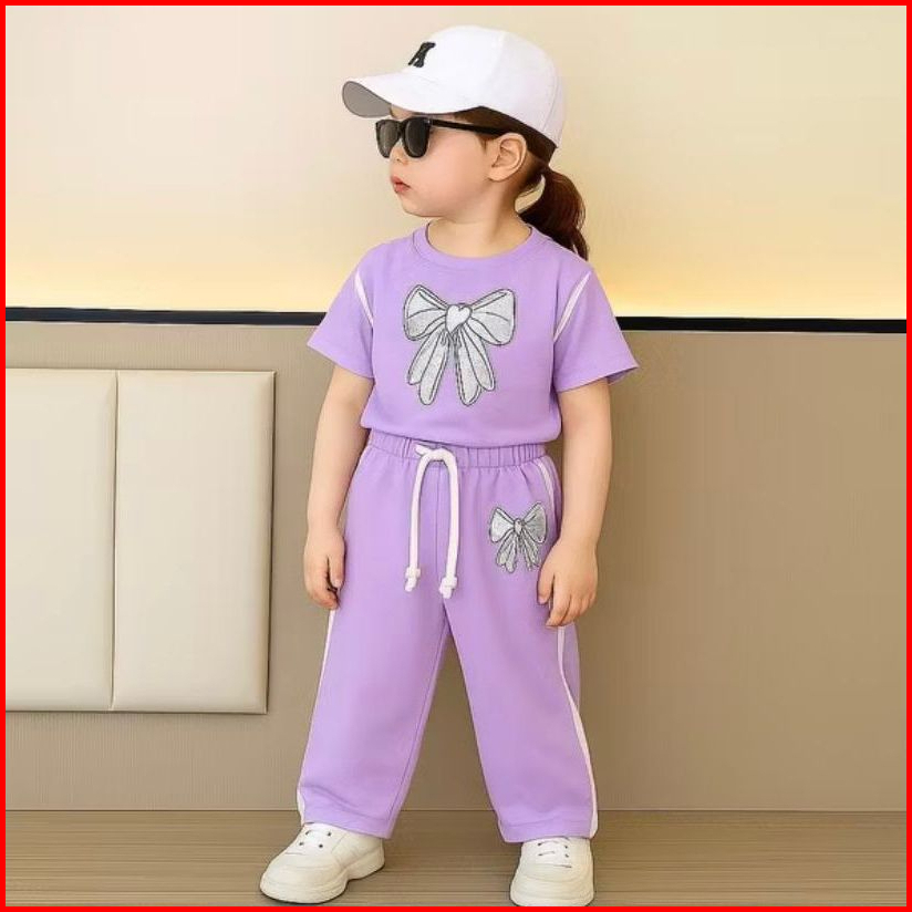 Setelan Viral Anak Cewek Motif Pita Usia 1-10 Tahun Baju One Set Anak Perempuan