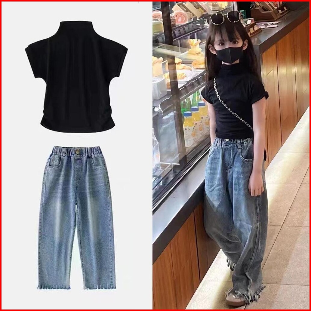 Setelan Jeans Anak Perempuan Setelan Anak Perempuan Oneset Anak Perempuan T-shirt Celana Panjang Anak Style Baru Anak Pe
