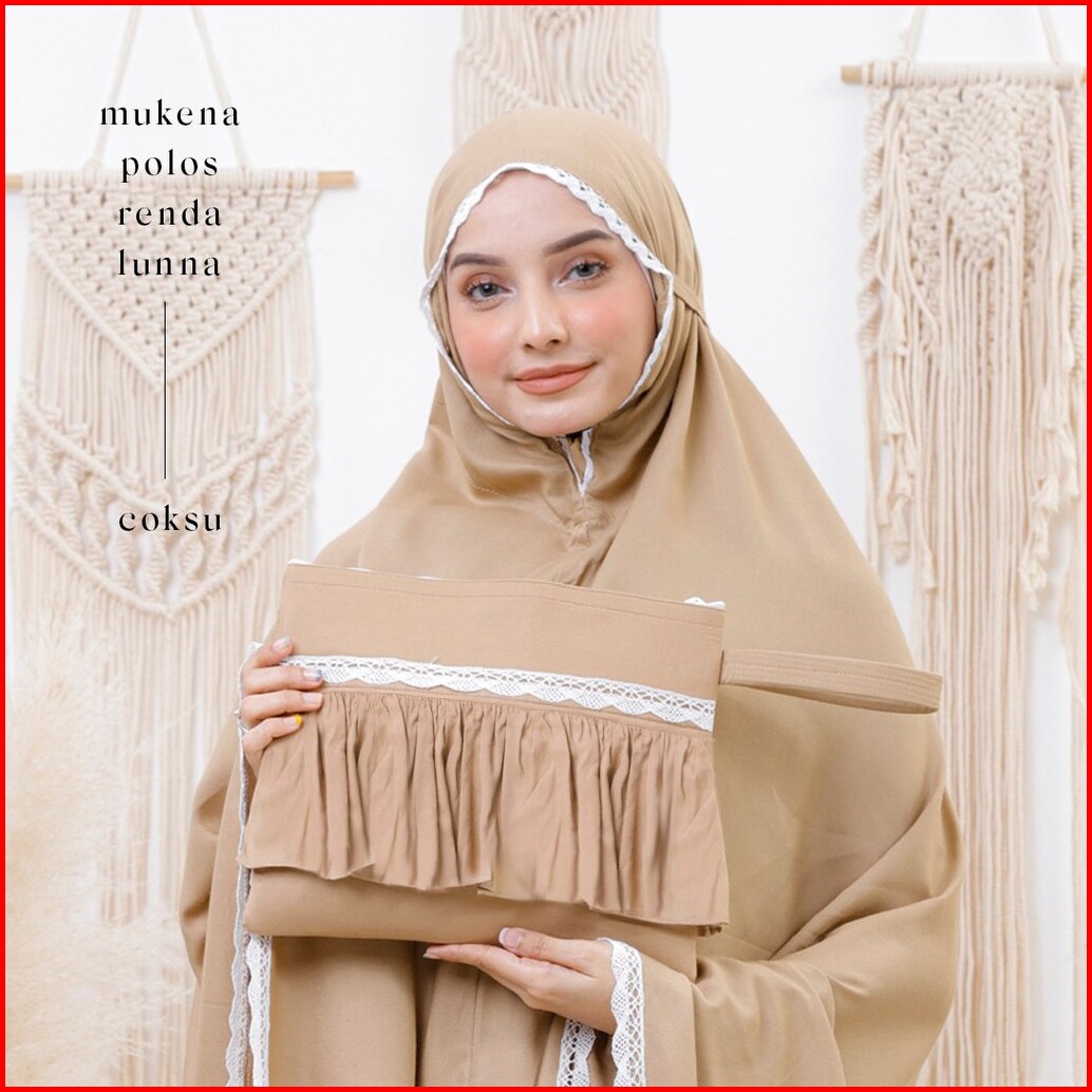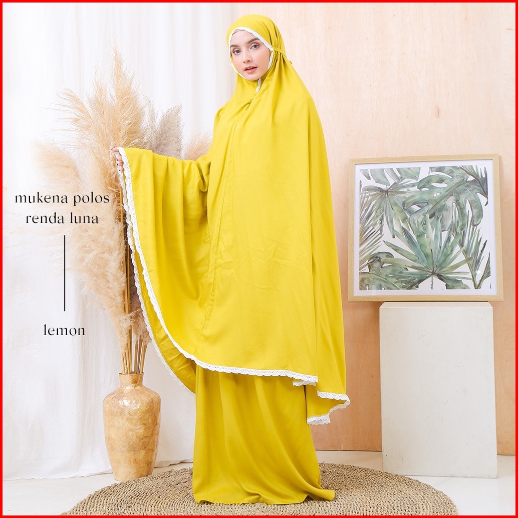 Leesy.id - Mukena Dewasa Polos Travelling Rayon Premium Motif Renda Lunna