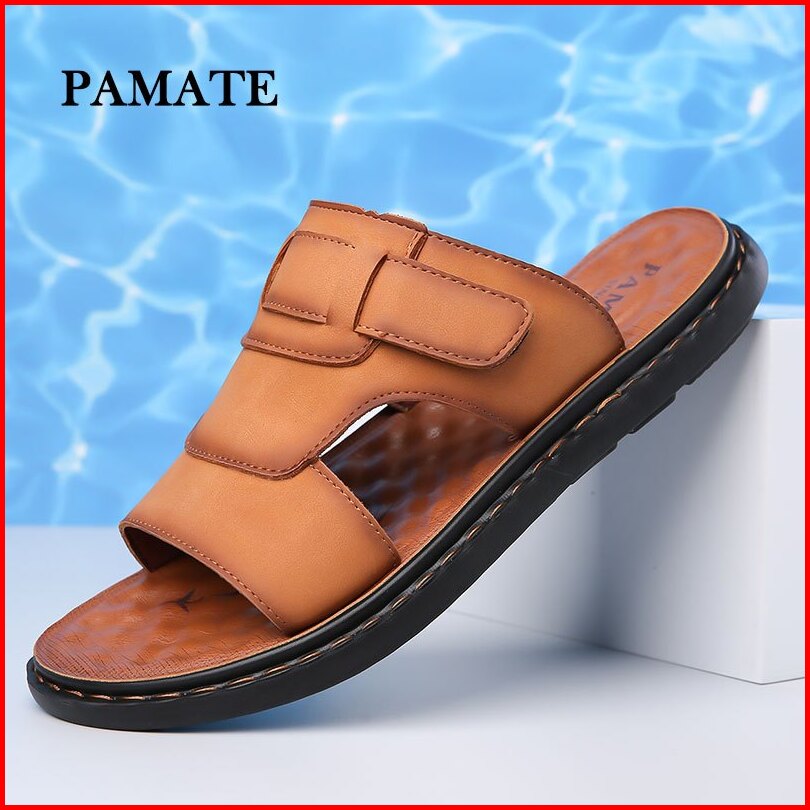 Sandal Pria Sendal Selop Slip On Kulit Hitam Pamate - Casual Anti Selip