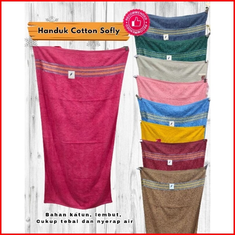 Handuk Mandi Cotton Softly Impor Uk 71x135cm Motif Lis Campur Polos