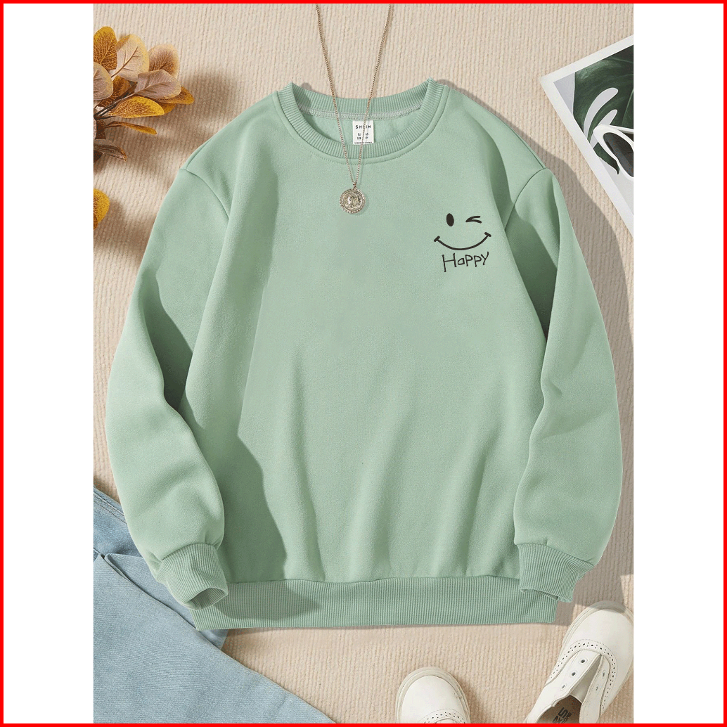 Sweater Basic Wanita Happy Switer Crewneck Oblong Remaja Dewasa Sweater Cewe Flecce Murah Korean Style Hitam Coksu Dusty