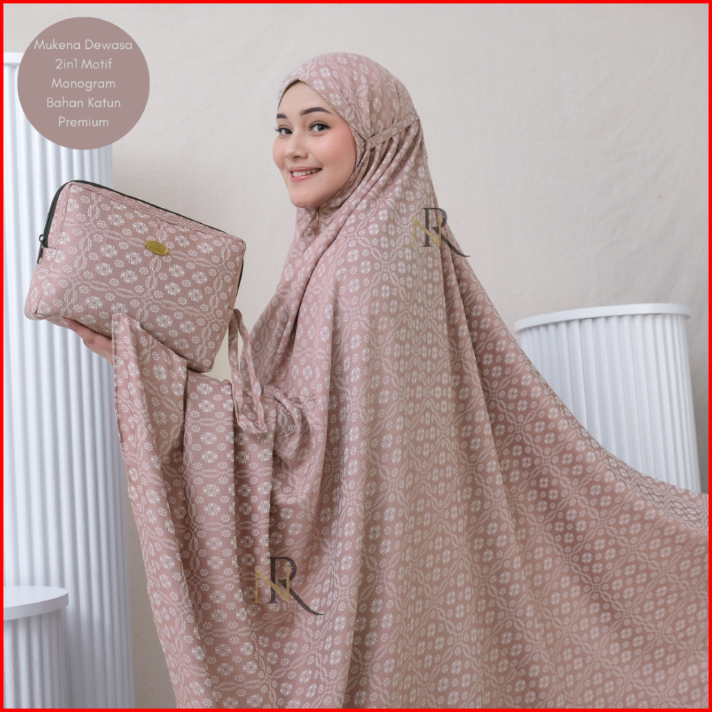 Nairhu Yasmina Series Mukena Rayon 2in1 Dewasa Motif Monogram Series
