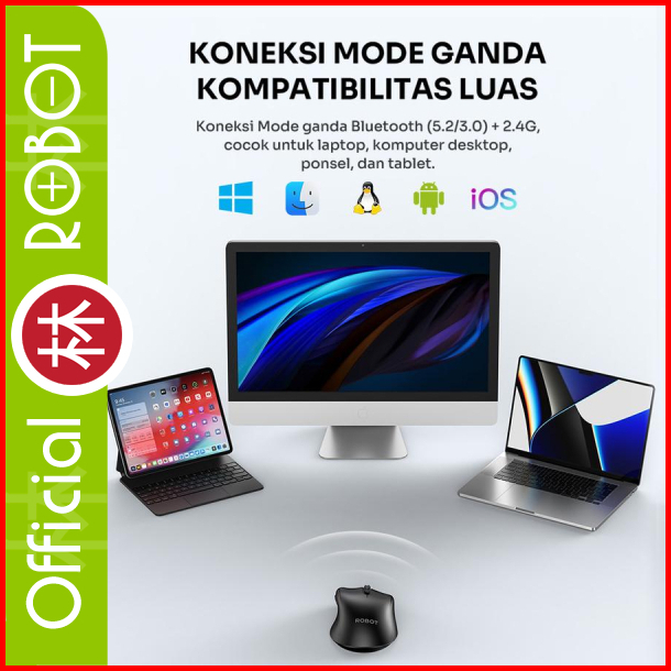 Robot M530 Mouse Dual Mode Wireless Bluetooth Silent Click 1600dpi Usb Receiver Laptop Pc New M350