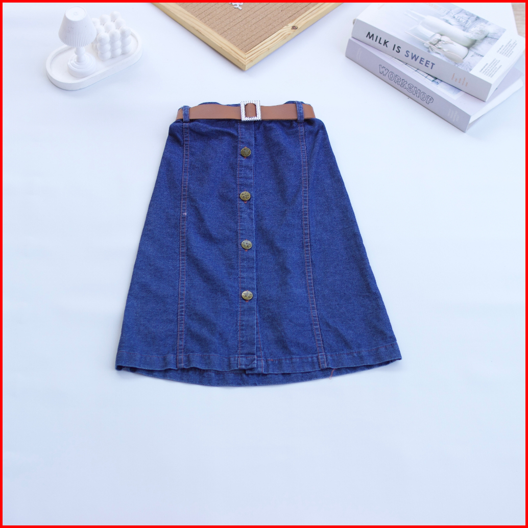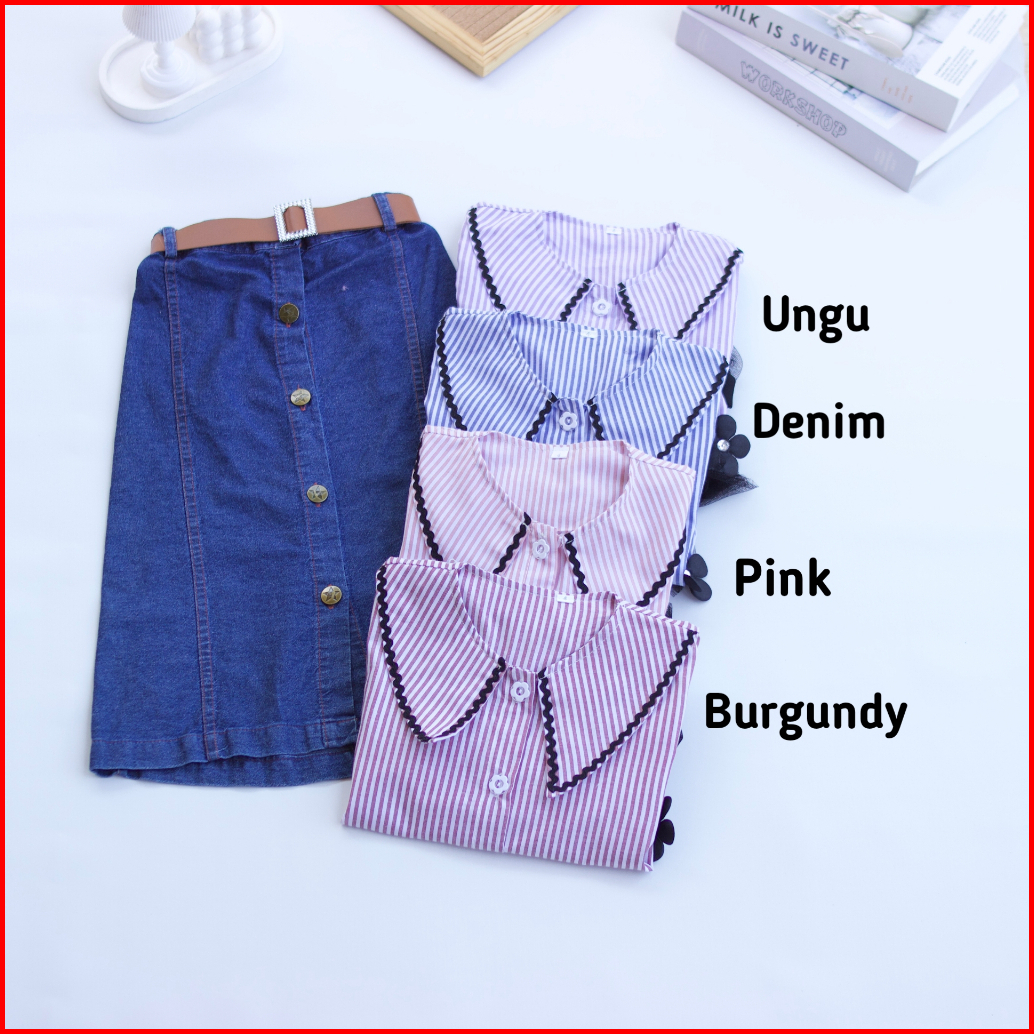 Setelan Rok Jeans Anak Ayura I Atasan Kemeja Motif Salur 1-12 Tahun I Fashion Anak Kekinian