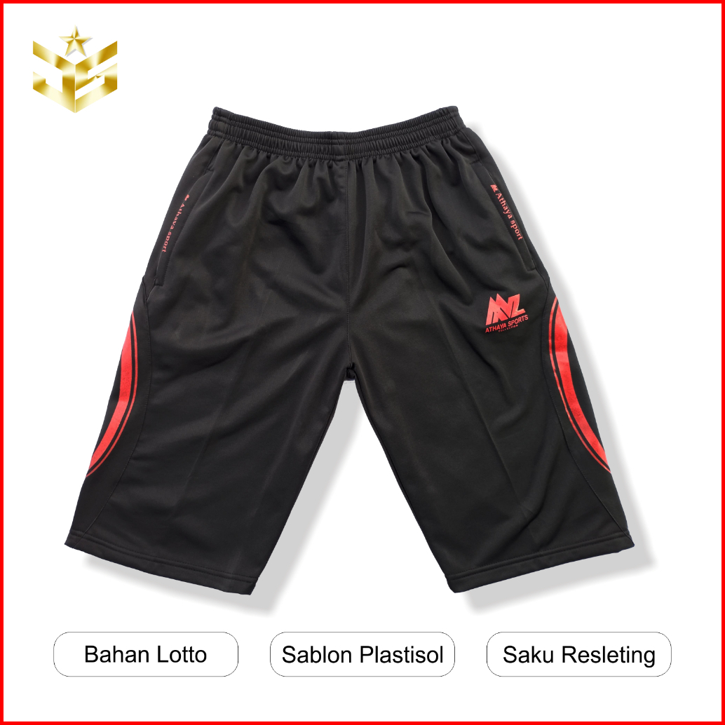 Celana Sontog 3 4 Pria Olahraga Gym Running Bahan Lotto Premium Saku Resleting