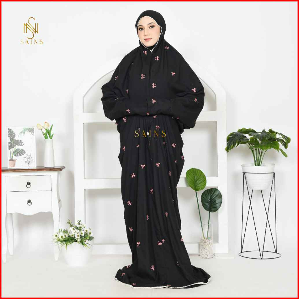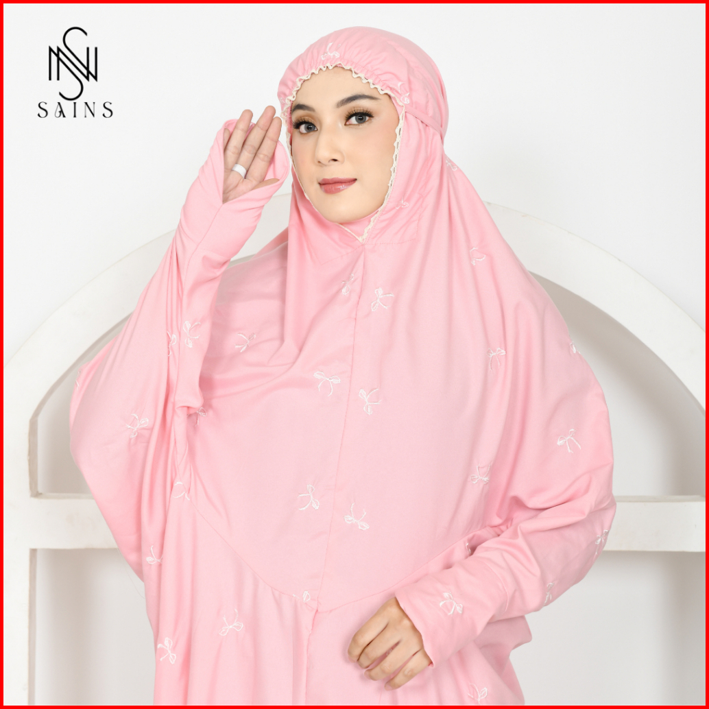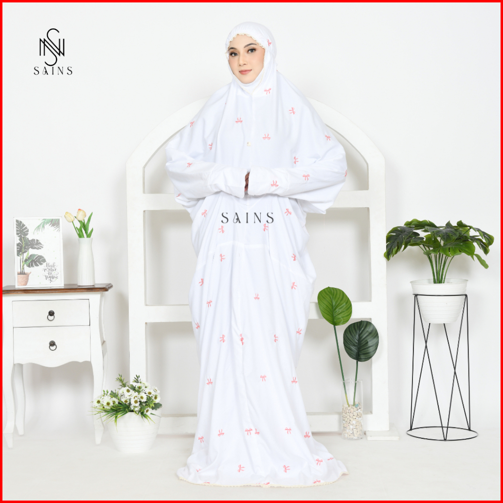 Sains - Mukena Terusan Dewasa Coquette Ribbon Pita Series Mukenah Lajuran Katun Premium Jumbo