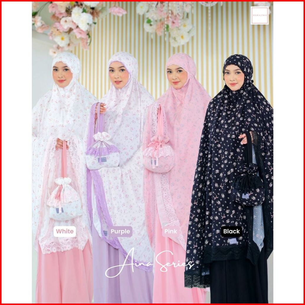 Mukena Katun Rayon Aina Series Motif Bunga Elegan
