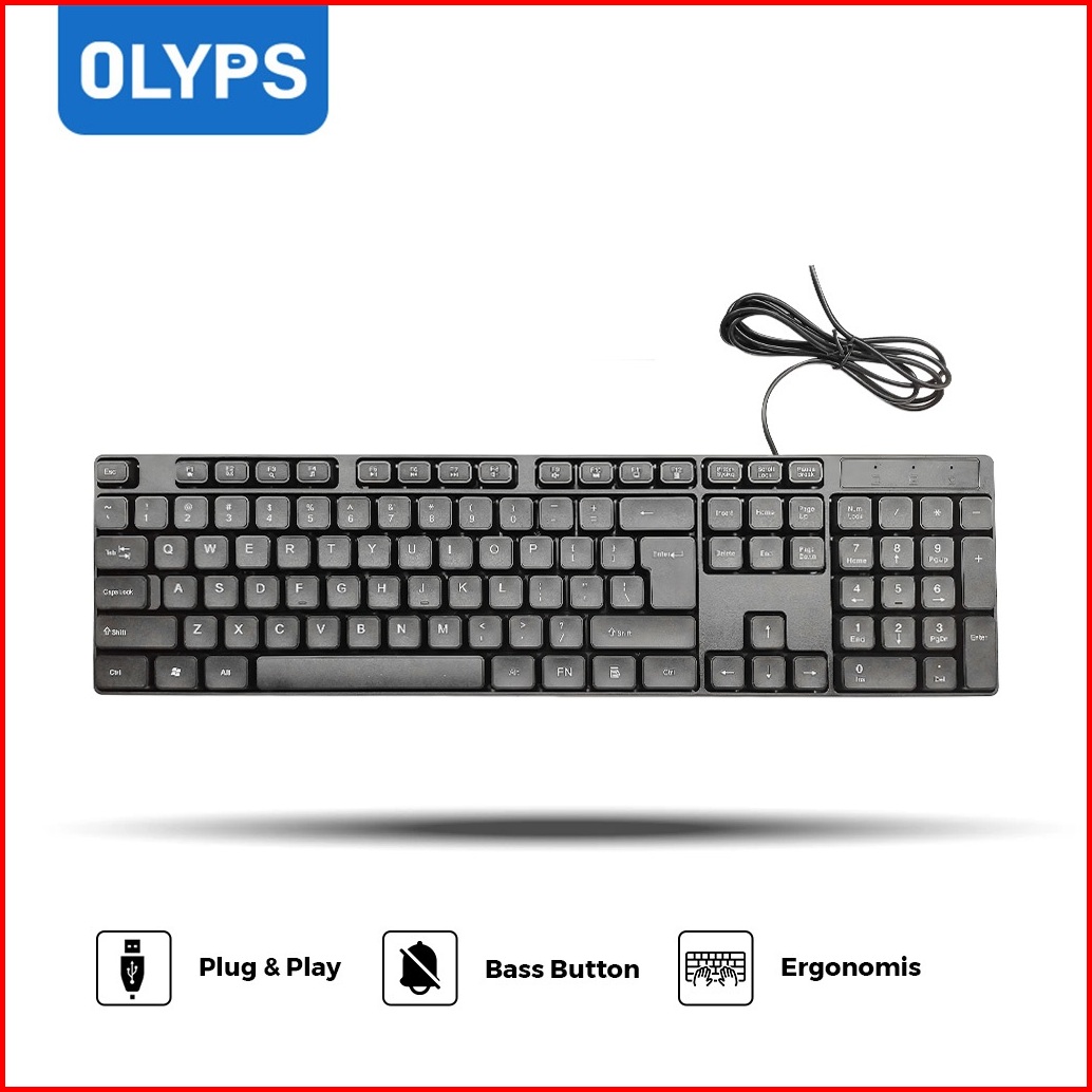 Olyps Keyboard Kabel Usb 104 Keys Full Size Office Keyboard Bass Button For Pc Laptop - 1.2m Kabel