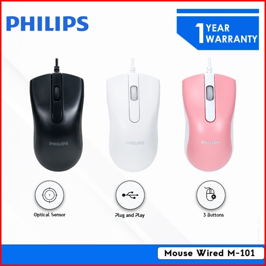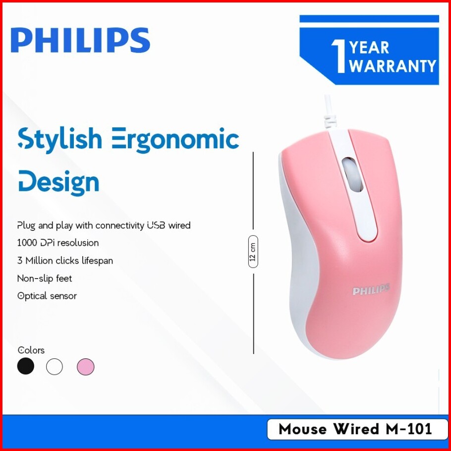 Philips Mouse M-101 Wired Usb 1000dpi Ergonomic Design - M101