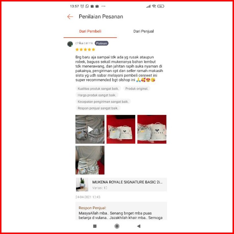 Vulana - Mukena Signature Basic 2in1 - Free Sajadah Masker